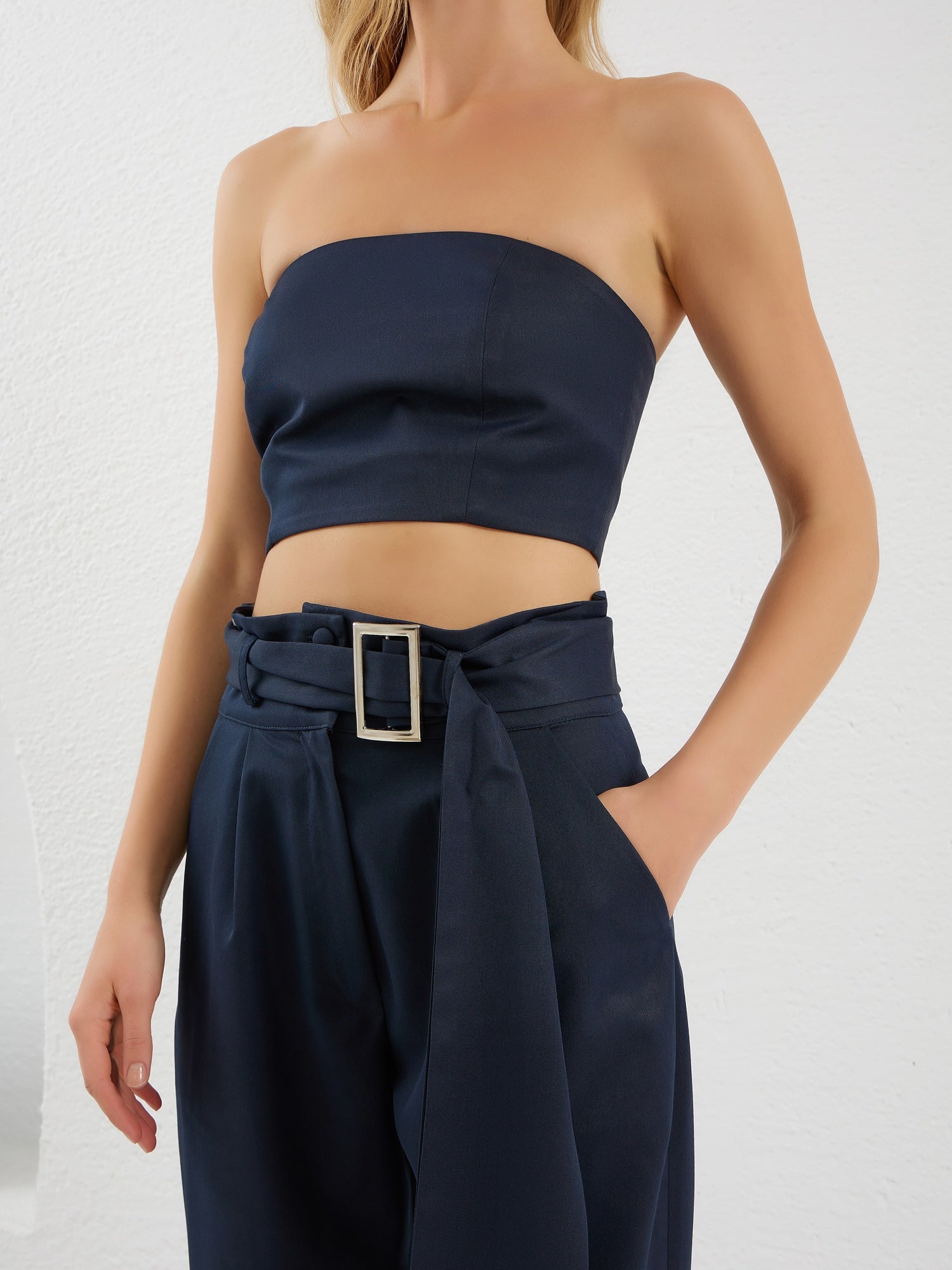 A chic and daring Corset crop top crafted in a tube-style silhouette, exuding elegance and boldness. Easily match with any other ensemble or as a standalone top.