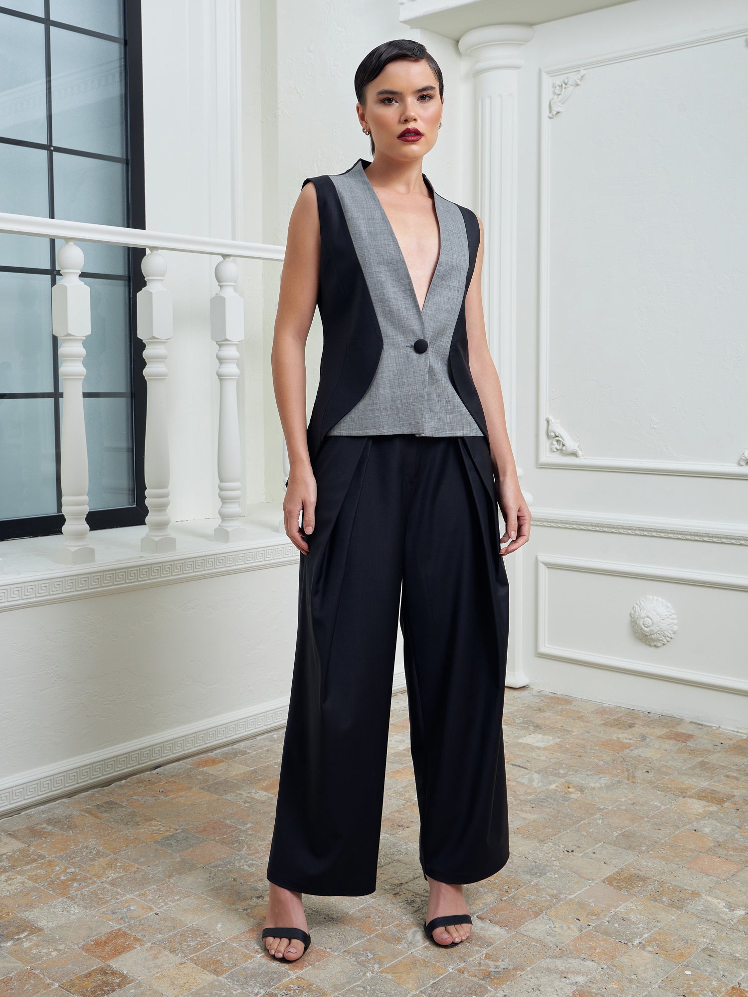 The Gathered Suit Vest & Pants Ensemble - Black & Gray