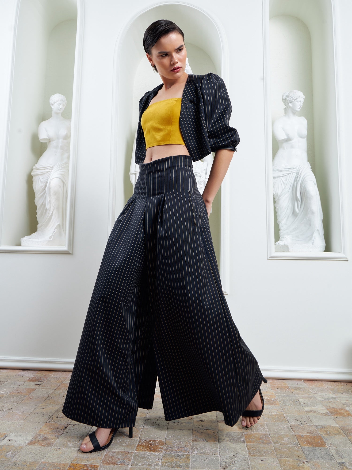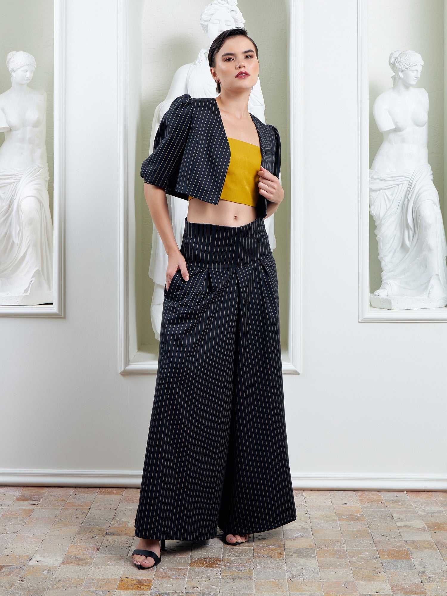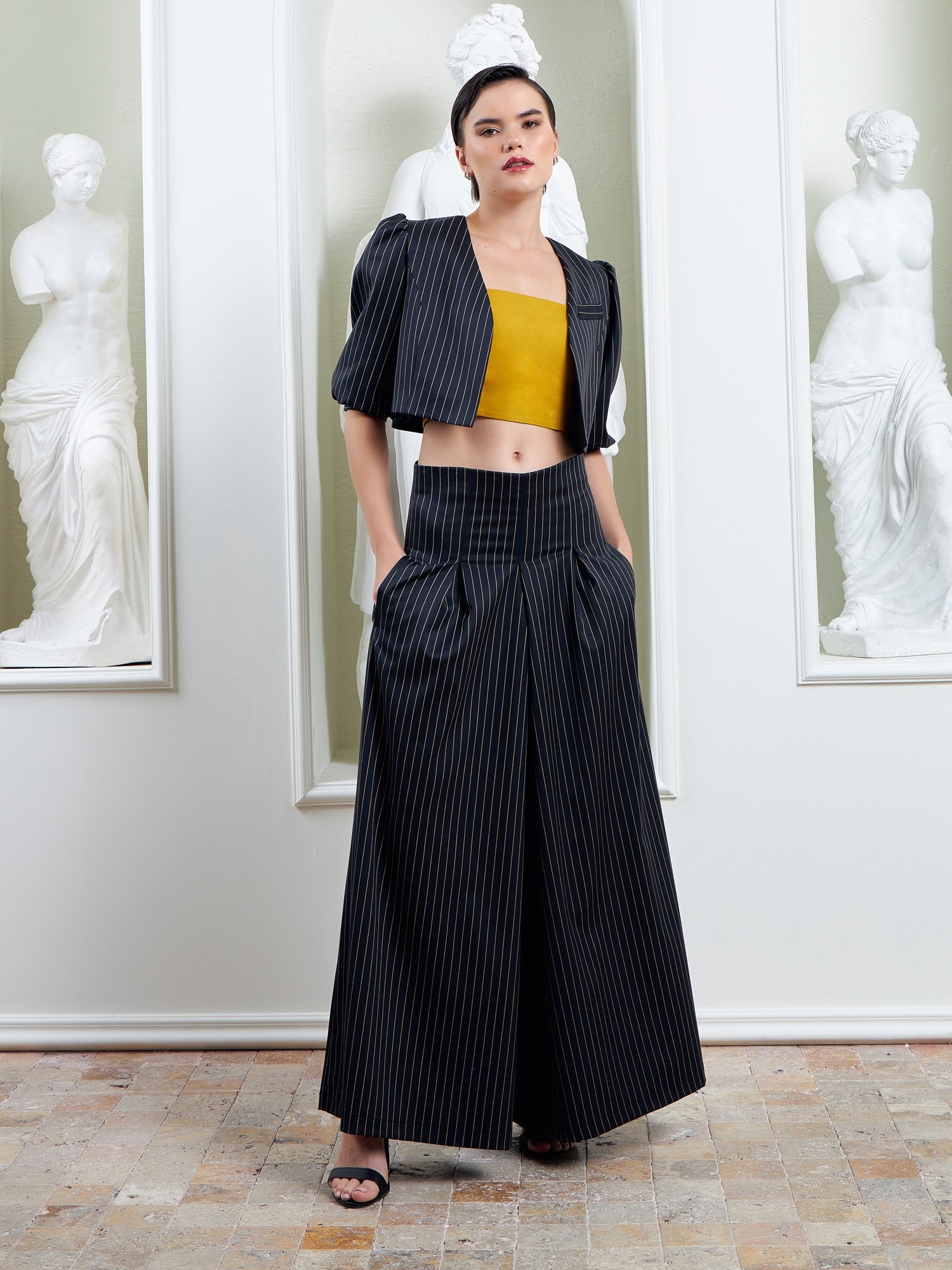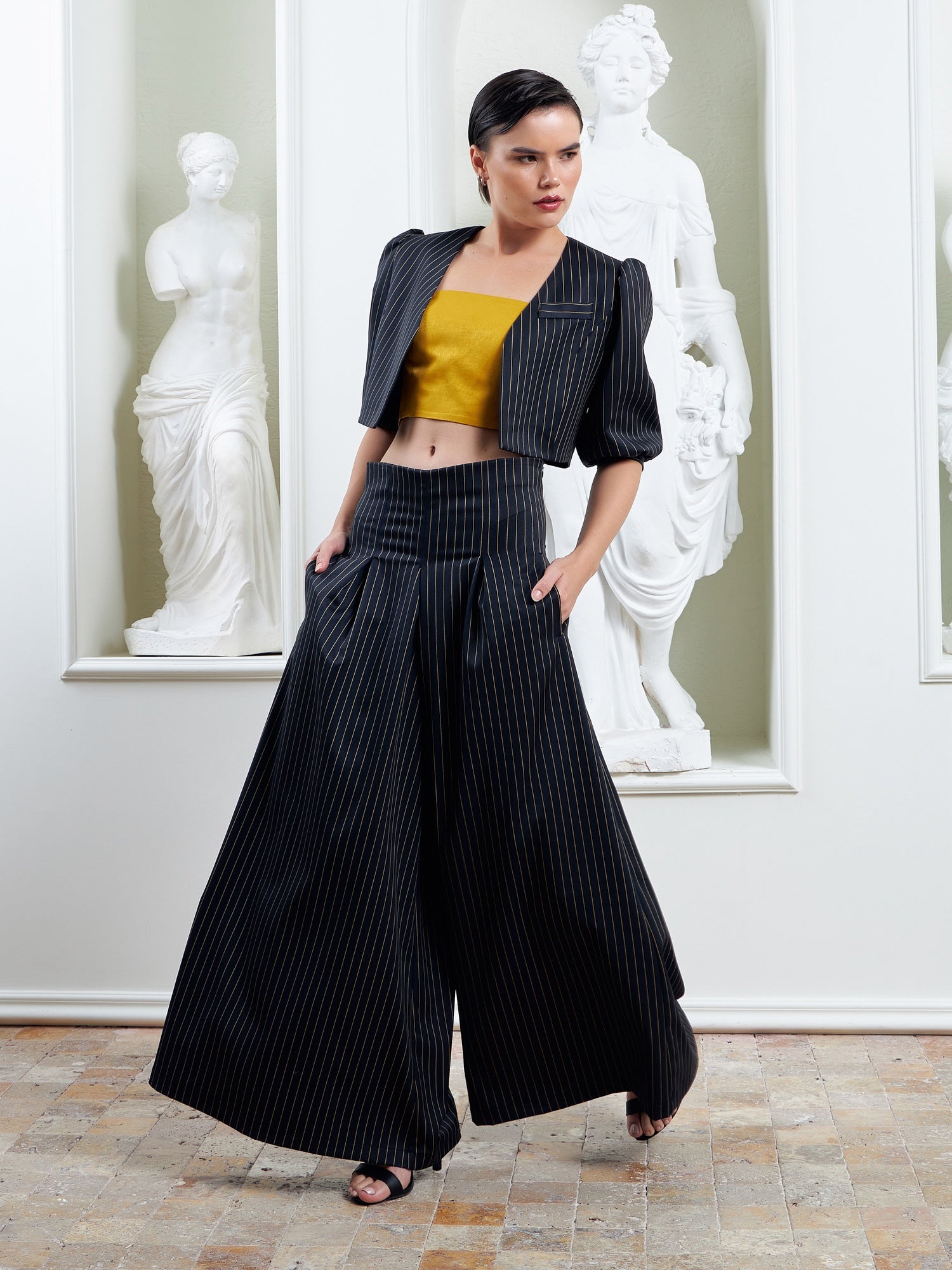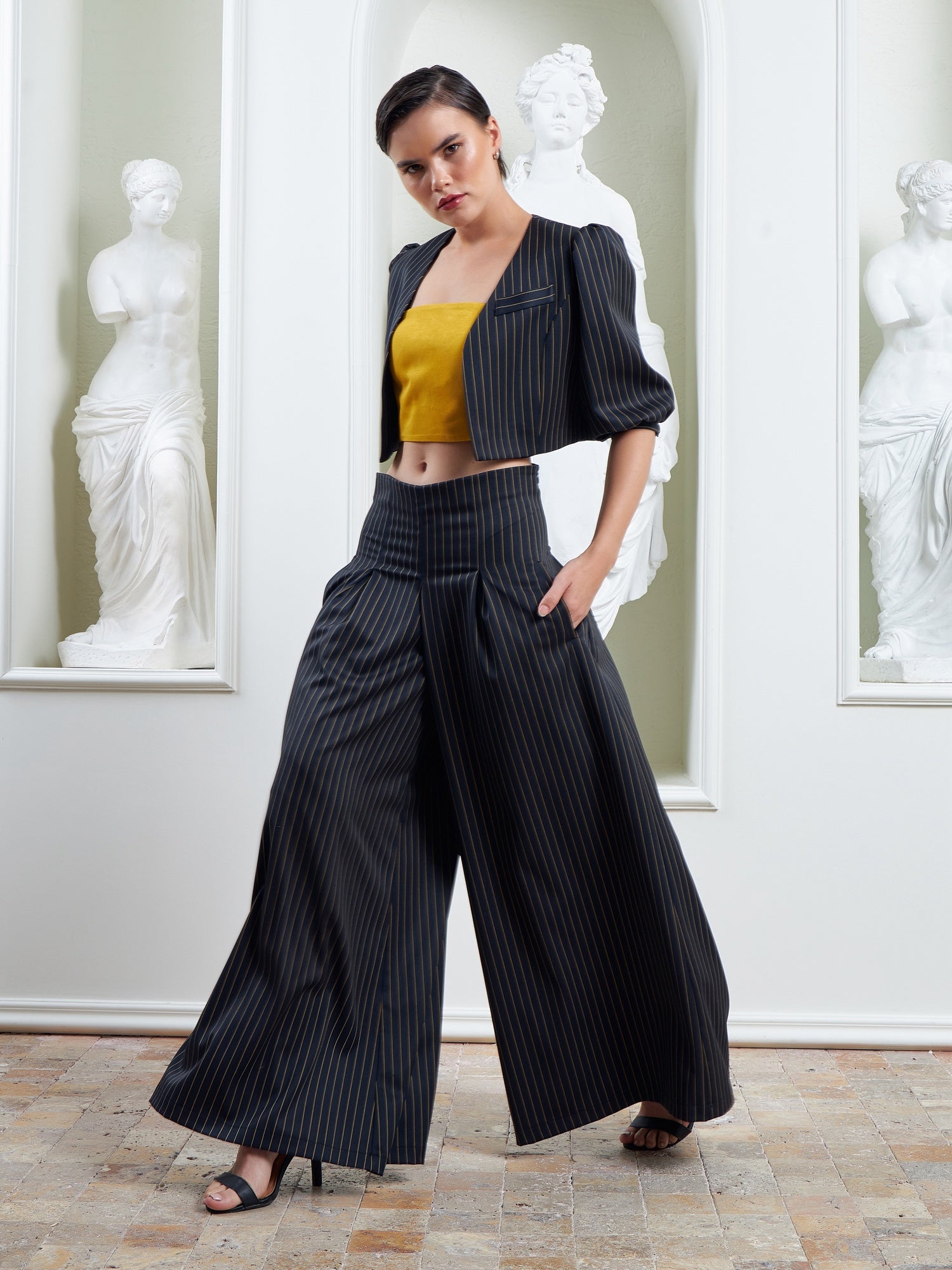 The Palazzo Pants - Navy & Gold Mustard