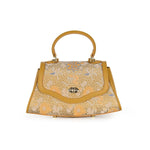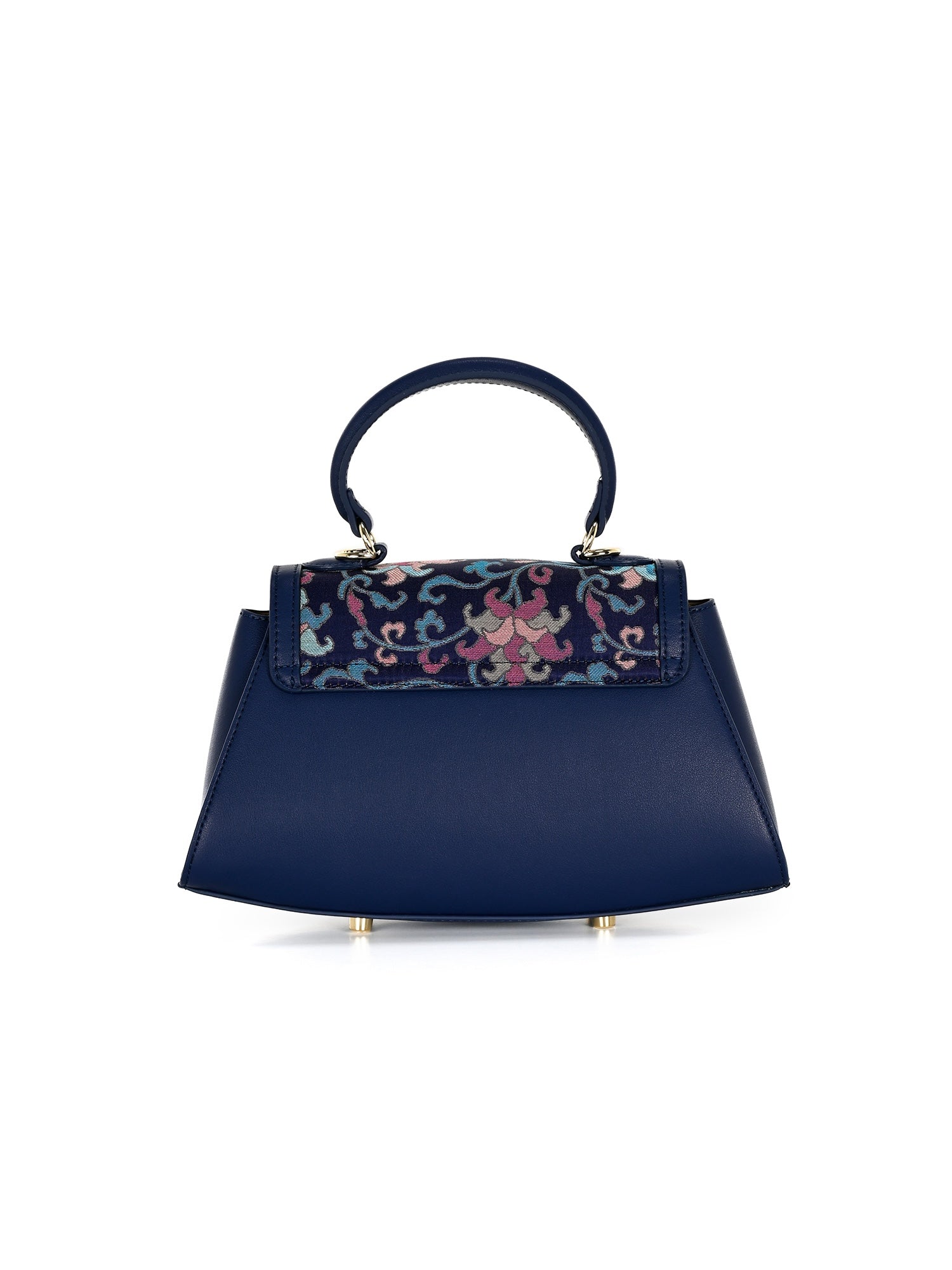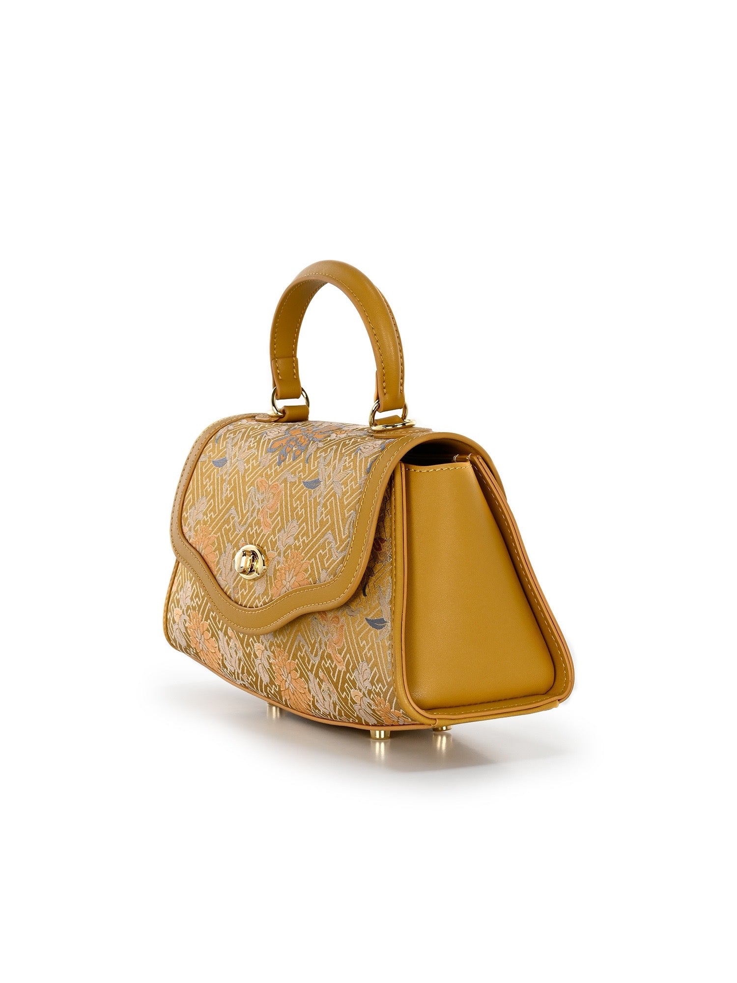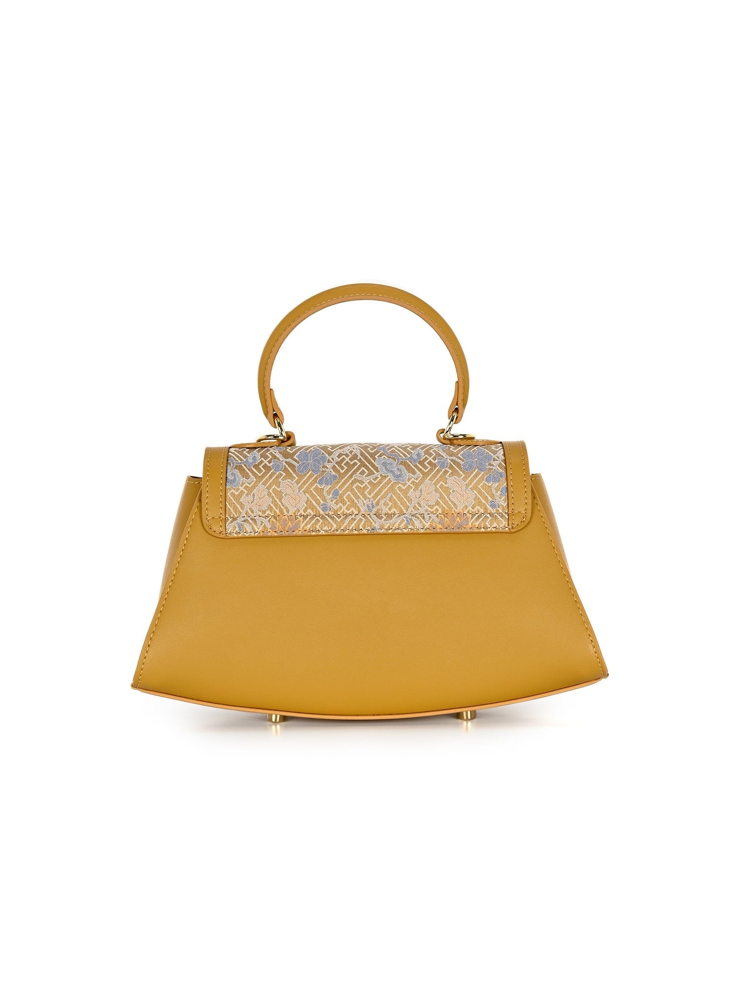 The Trapeze handbag with handle, made of premium leather and covered with mulberry silk brocade. An elegant accessory to compliment your outfit.