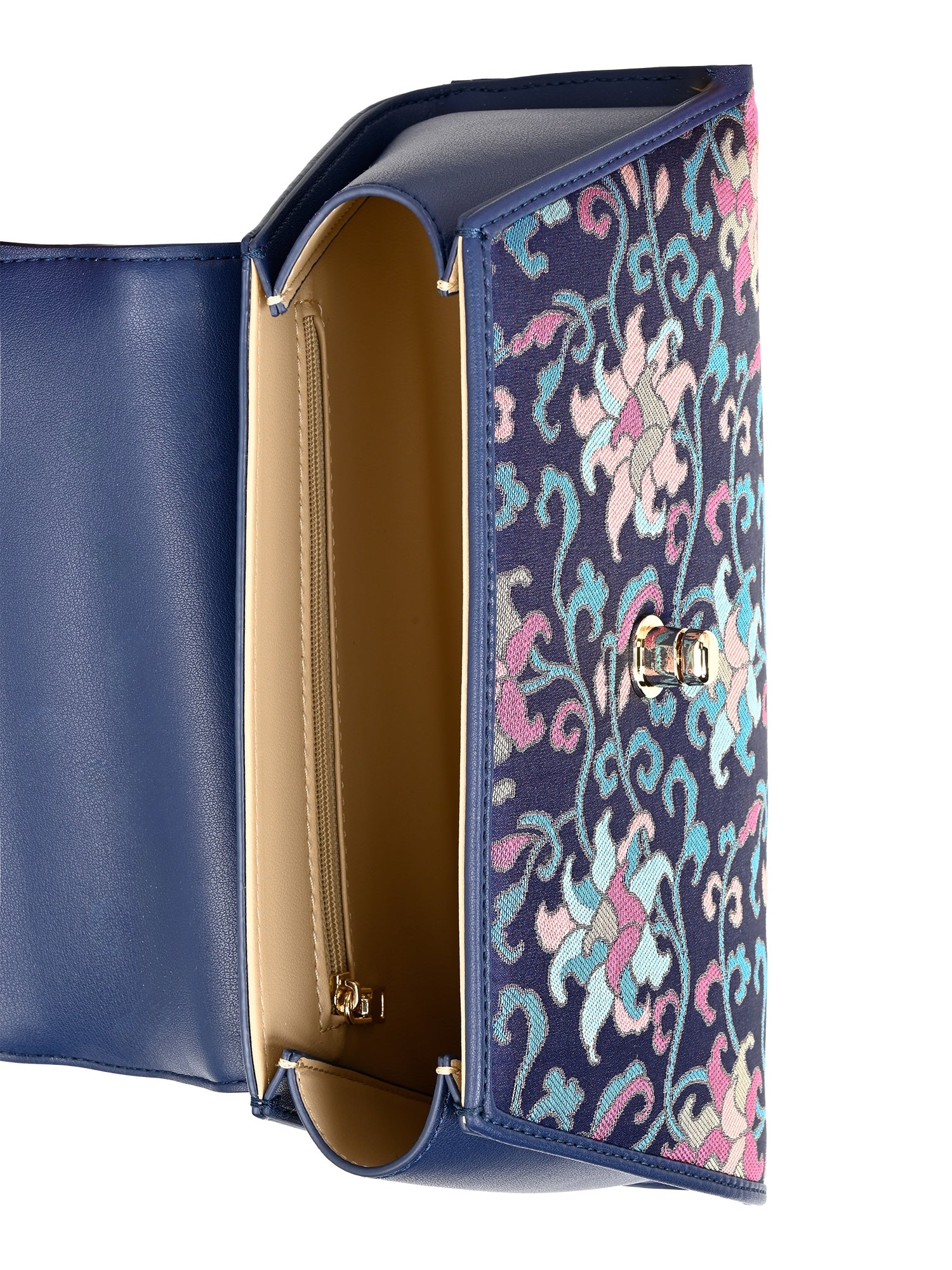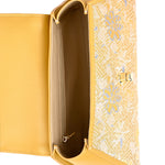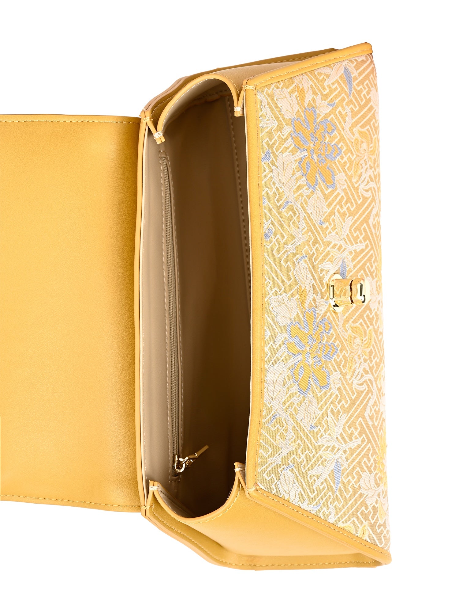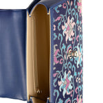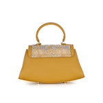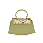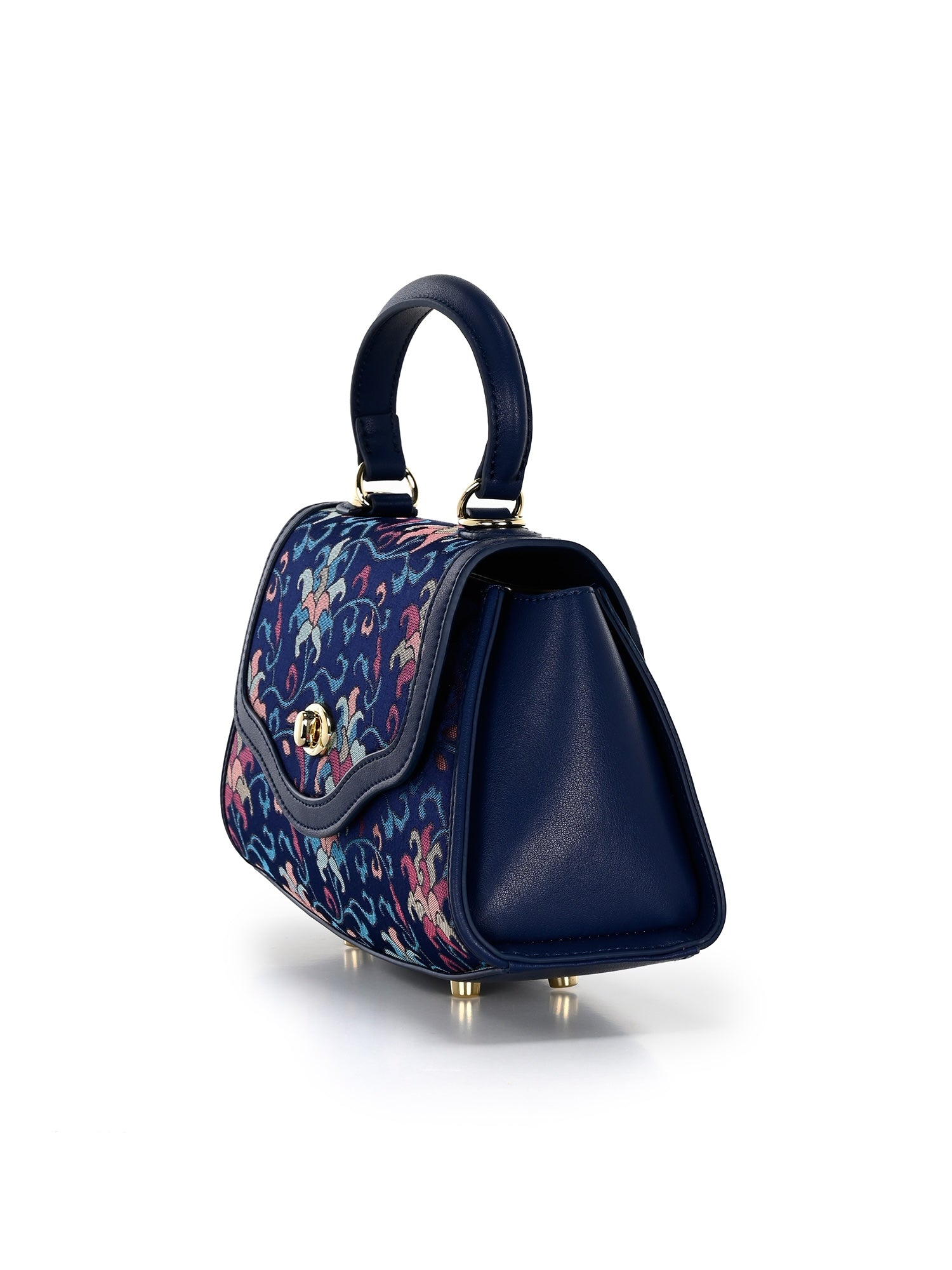 The Trapeze handbag with handle, made of premium leather and covered with mulberry silk brocade. An elegant accessory to compliment your outfit.