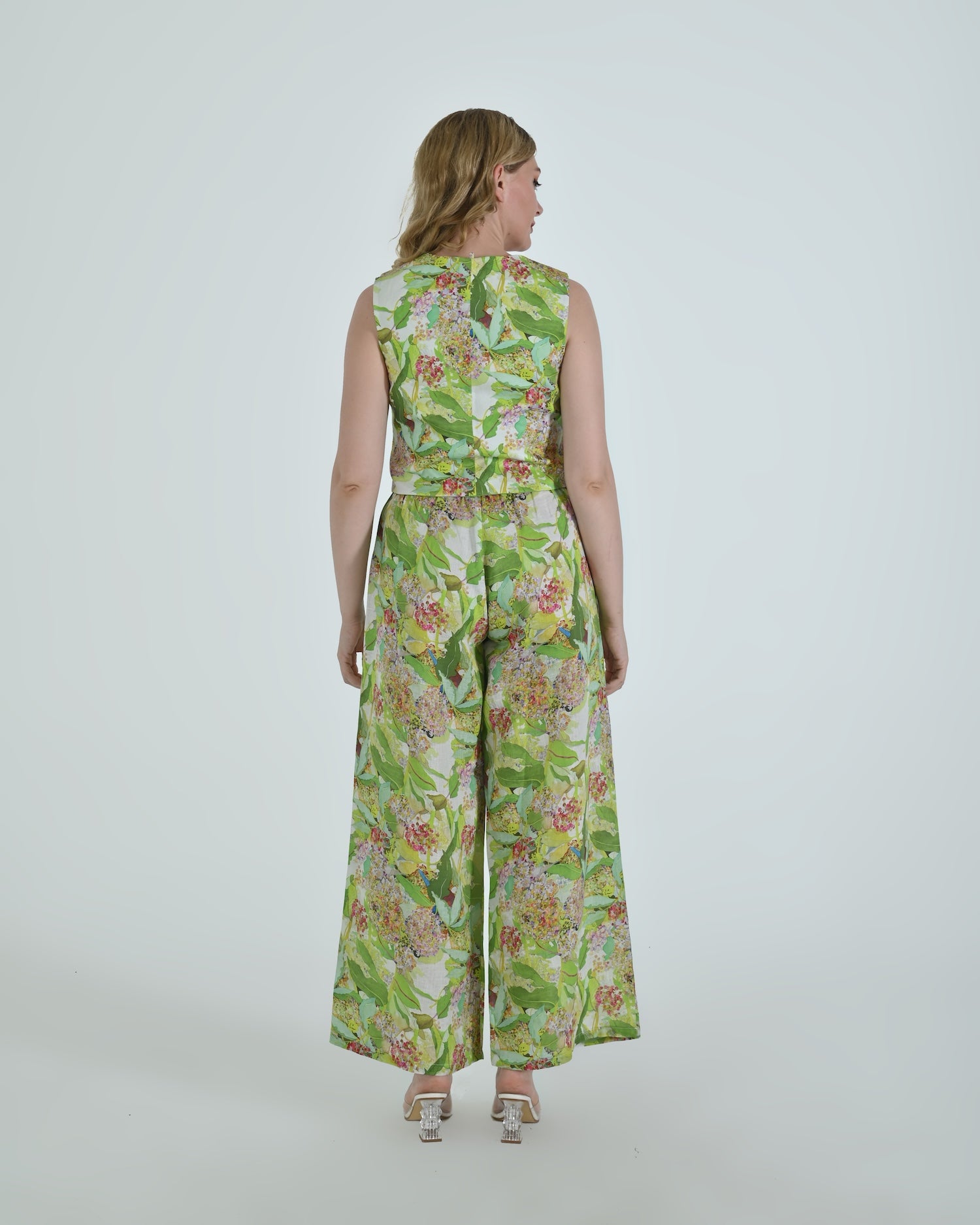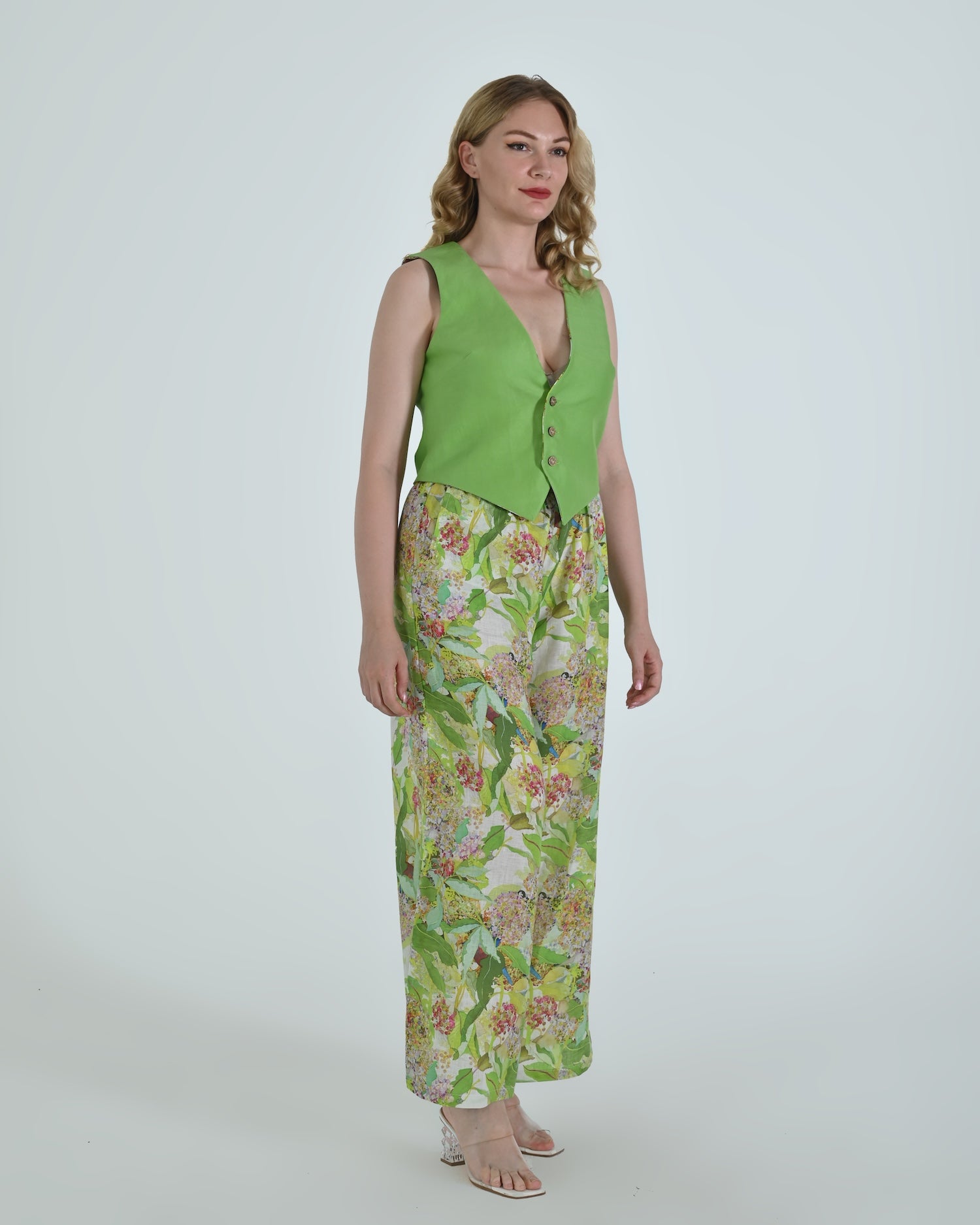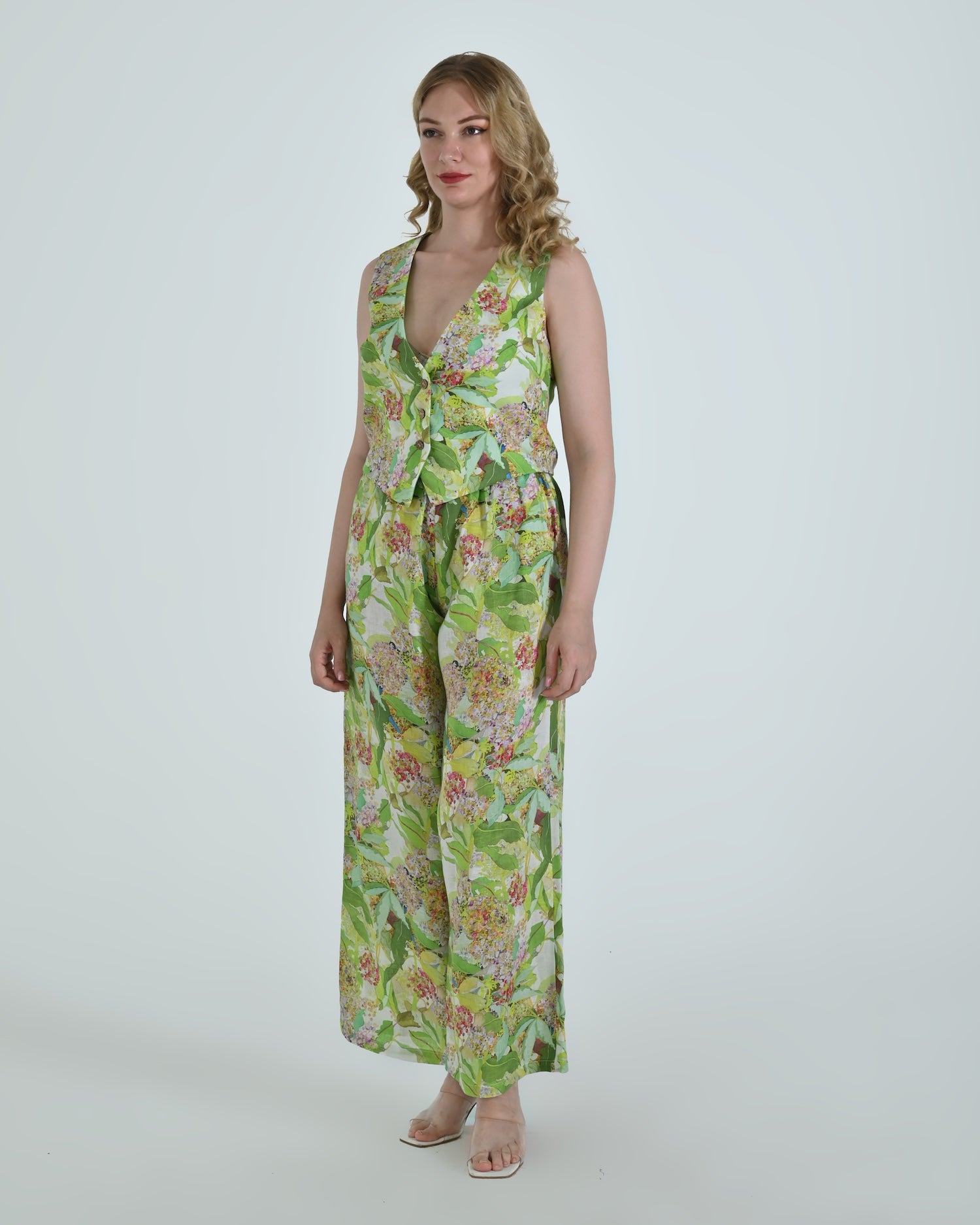 Paired with wide-leg trousers that flow with relaxed confidence, the Vento pants blend soft structure with a flattering high waist and crisp pleating. Together, they celebrate linen’s natural drape and airy comfort.