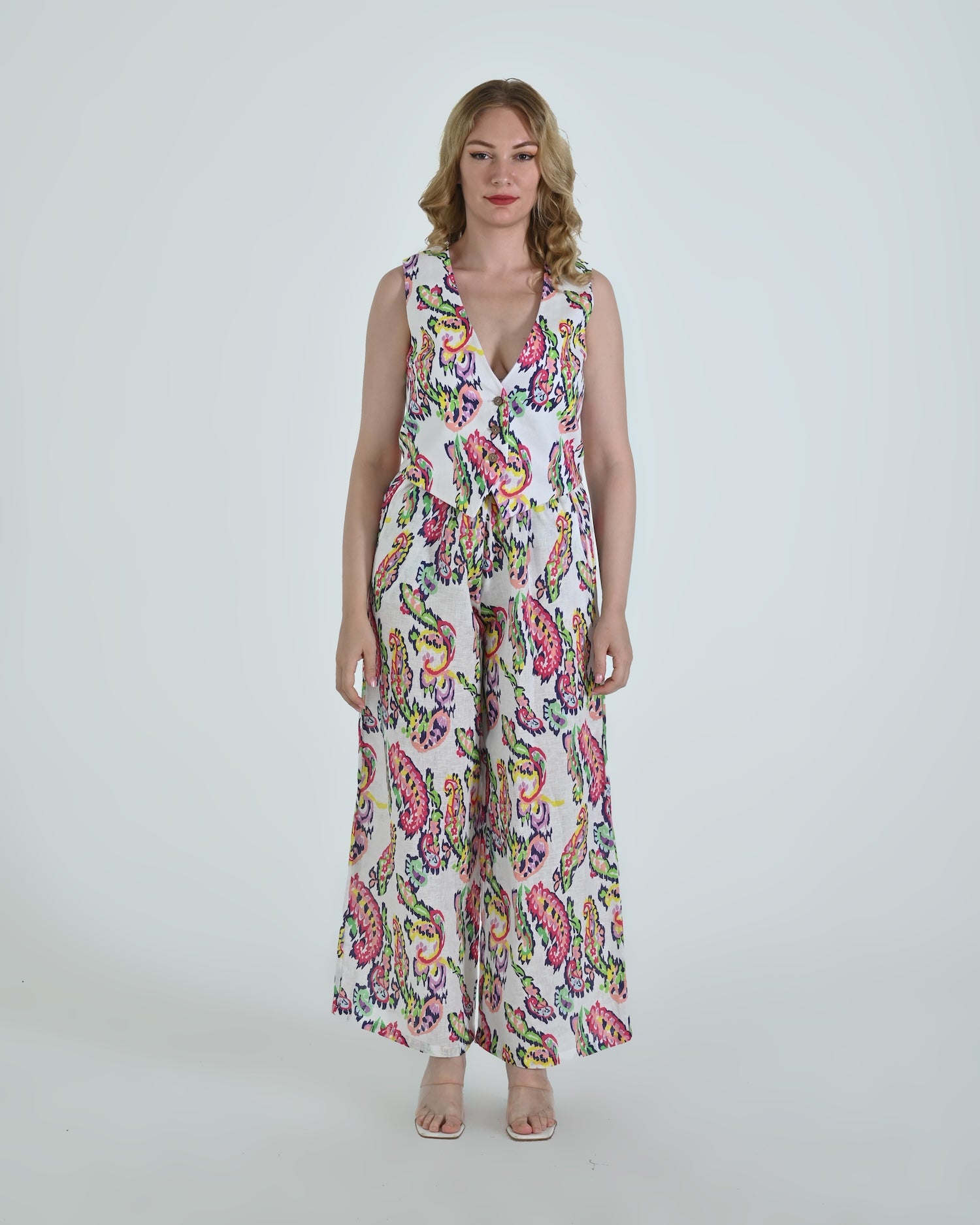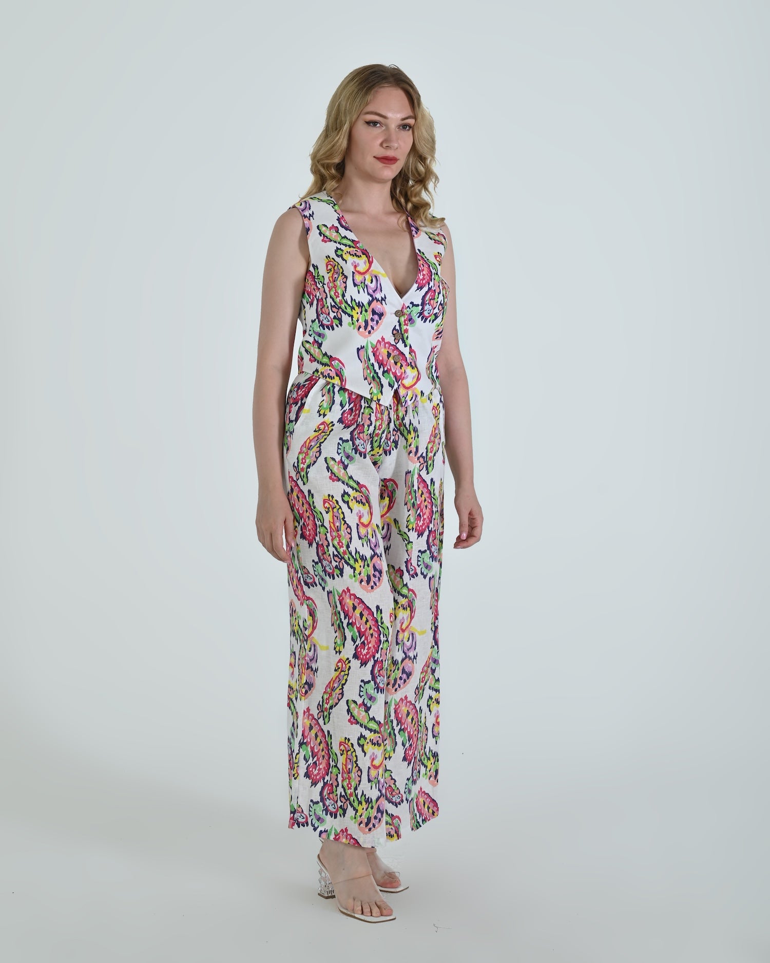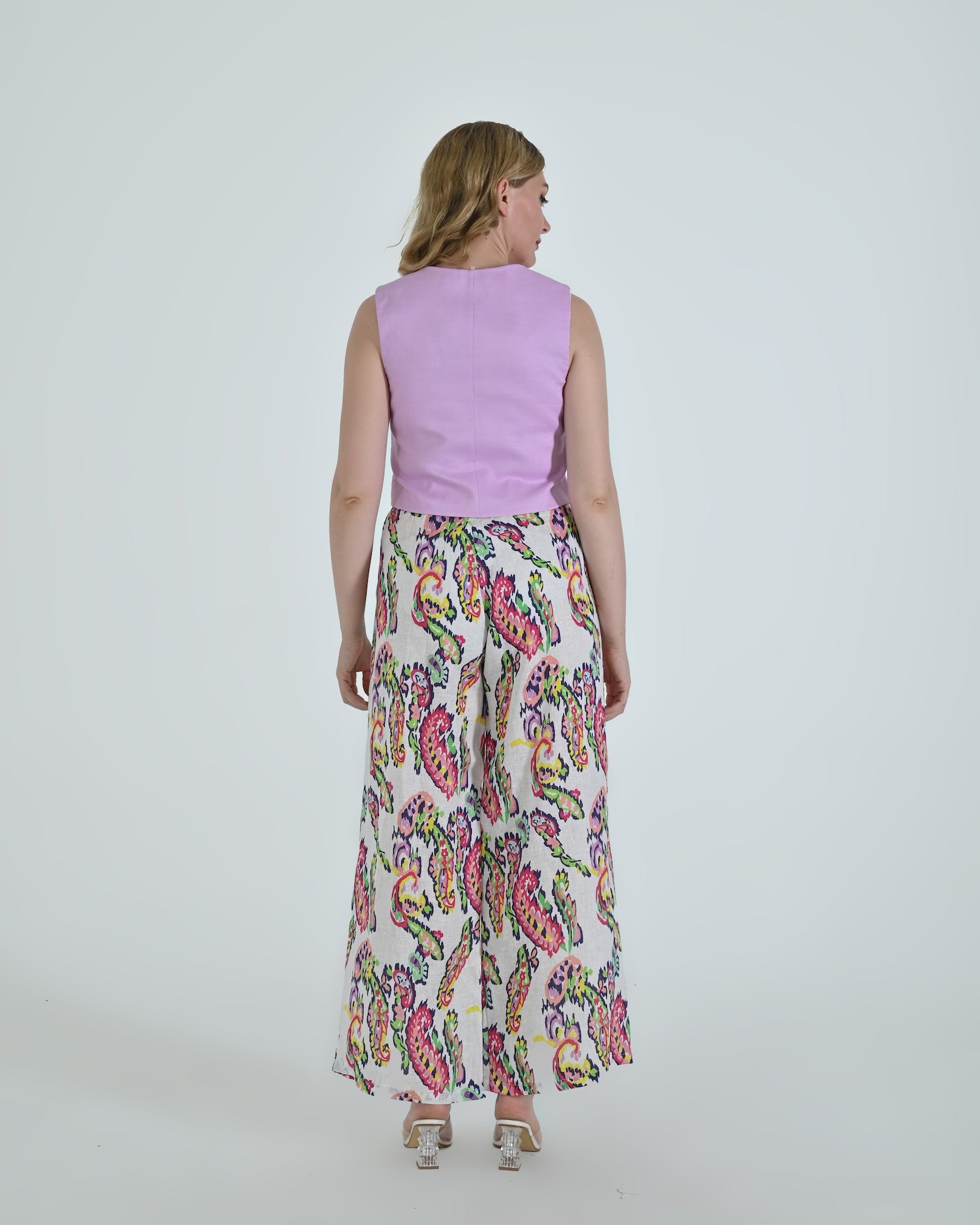 Paired with wide-leg trousers that flow with relaxed confidence, the Vento pants blend soft structure with a flattering high waist and crisp pleating. Together, they celebrate linen’s natural drape and airy comfort.