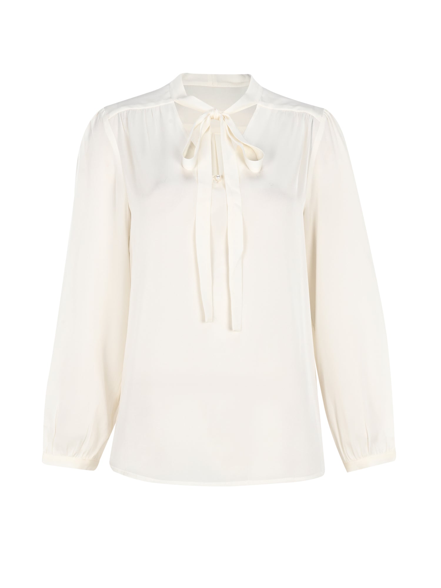 Silk Knot Ruffle Shirt - Cream Sage