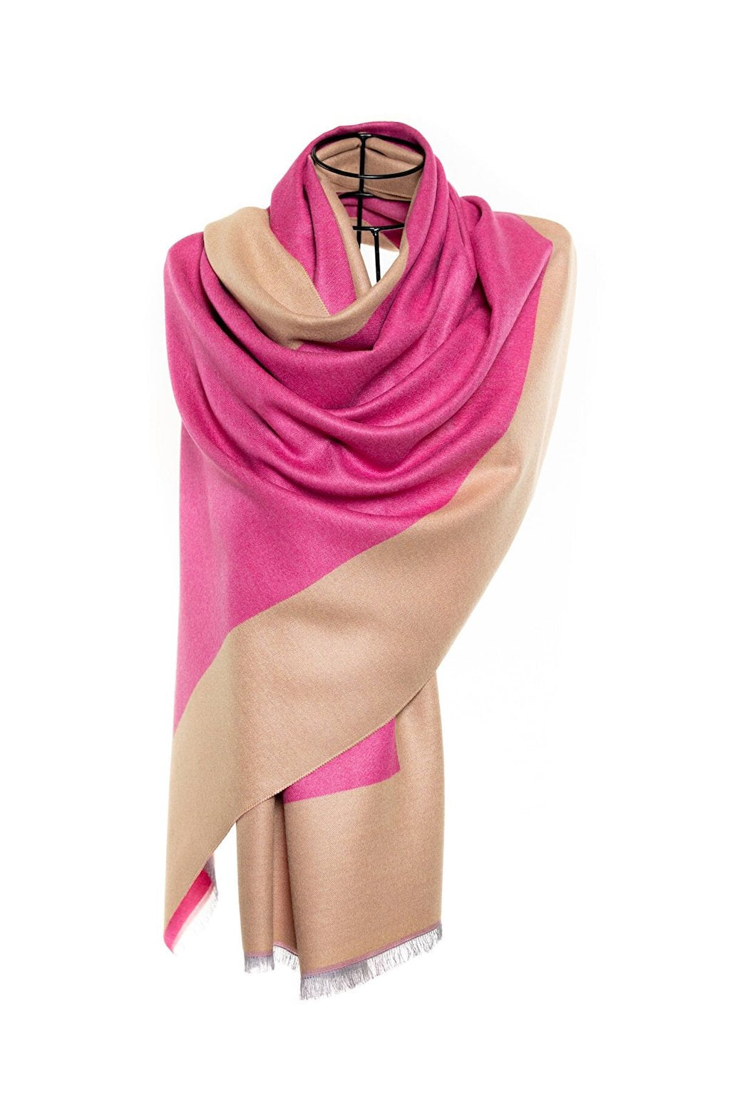 Reversible Mo-shmere Double Rectangle Shawl - Fuschia Beige