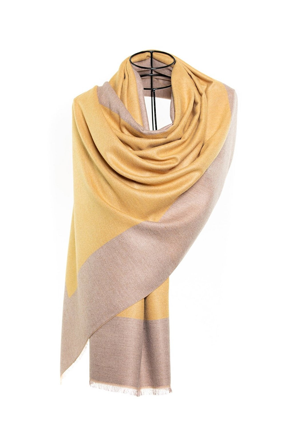 Reversible Mo-shmere Double Rectangle Shawl - Mustard Sepia
