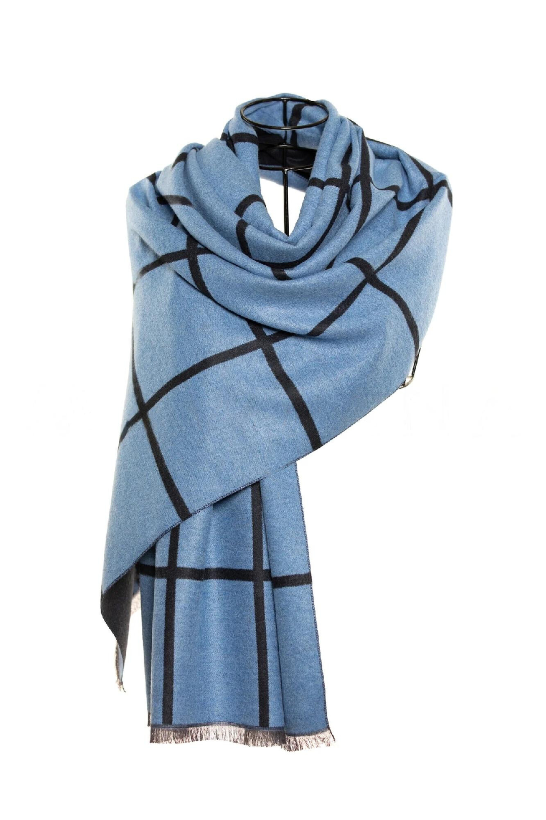 Reversible Mo-shmere Modal Cashmere Checkers Shawl - Light Blue Gray