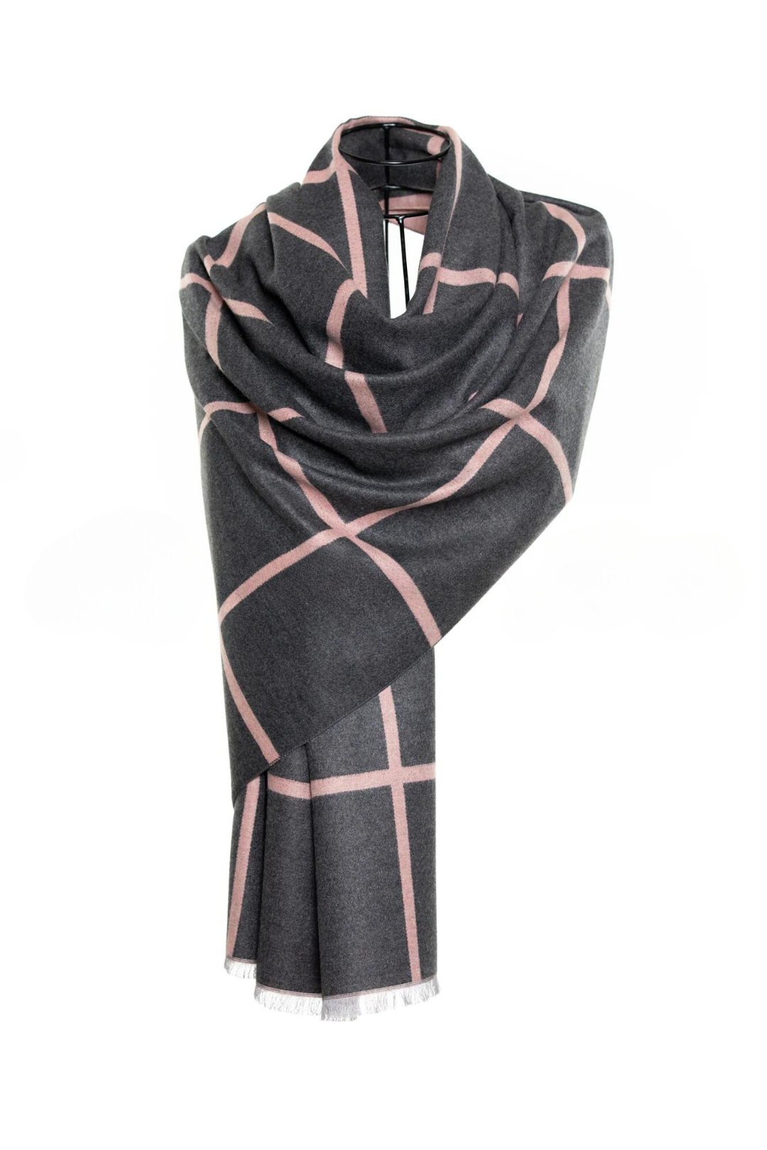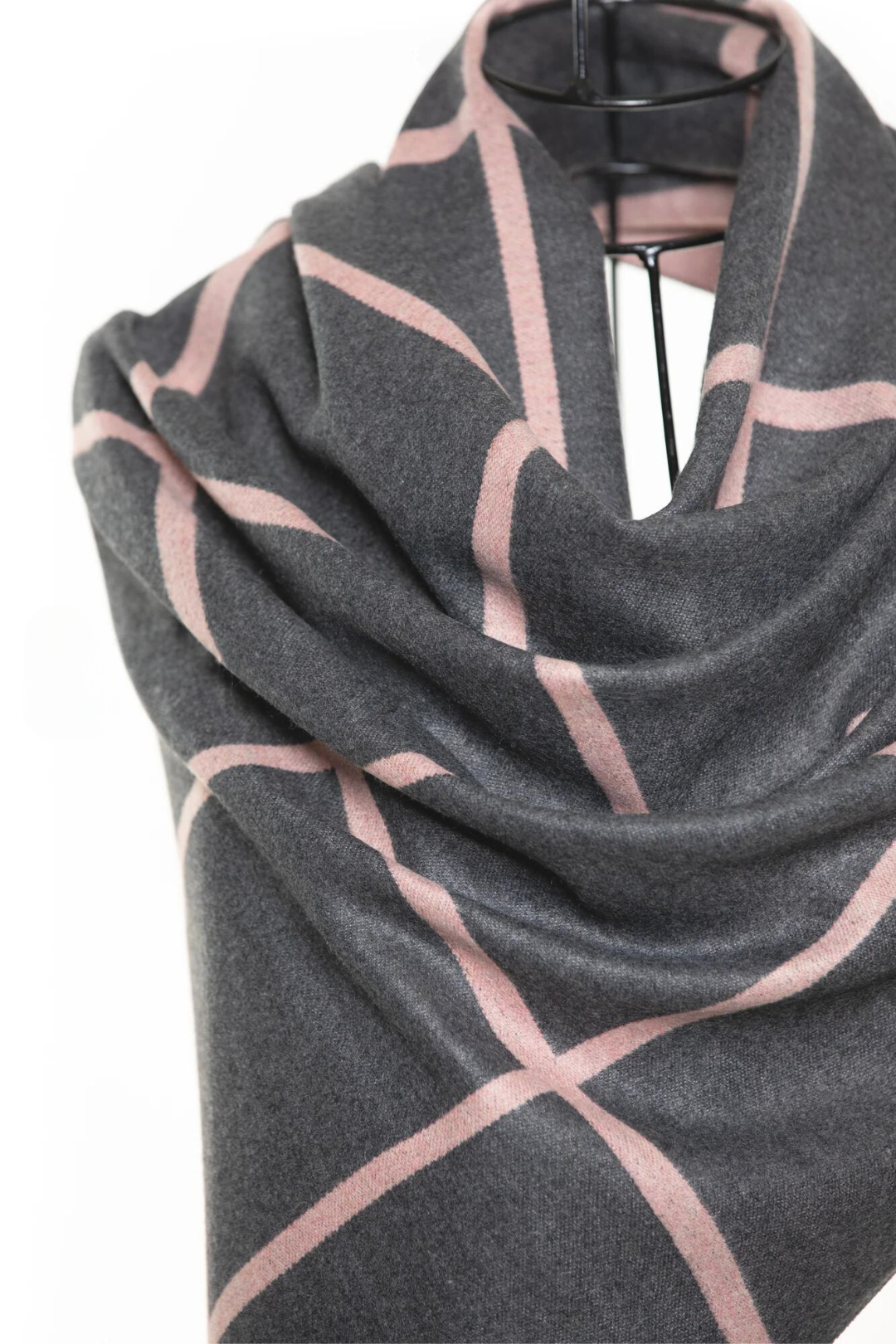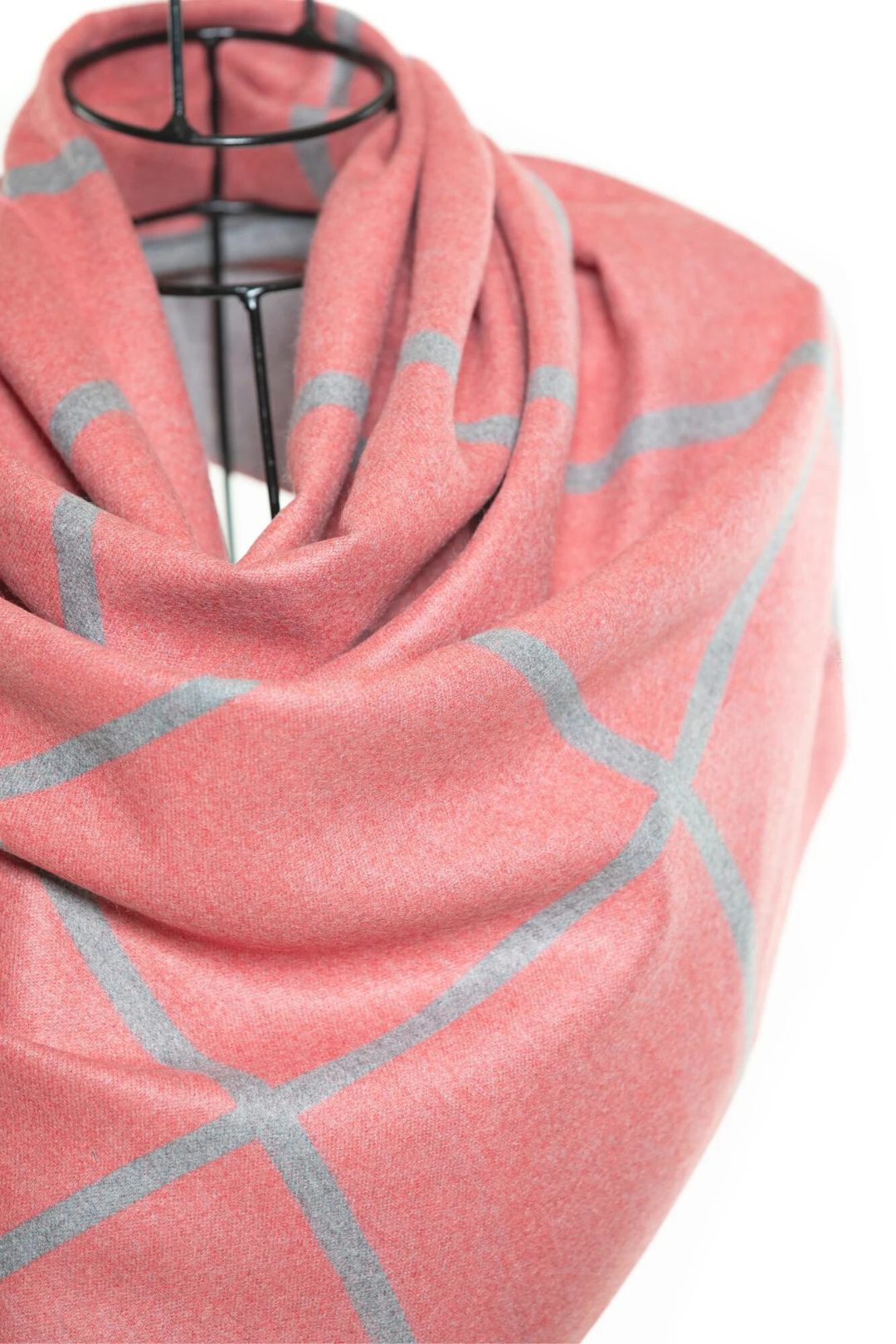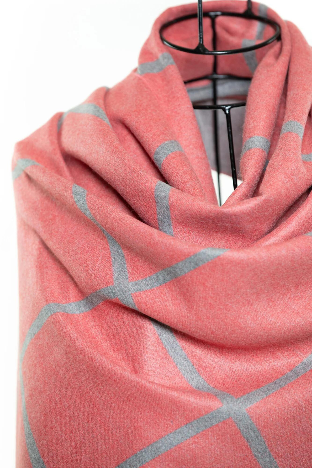 Reversible Mo-shmere Modal Cashmere Checkers Shawl - Salmon Gray
