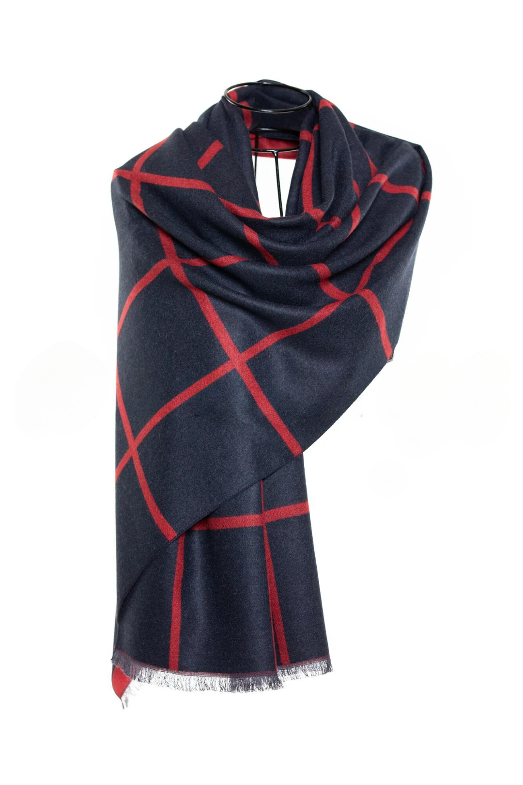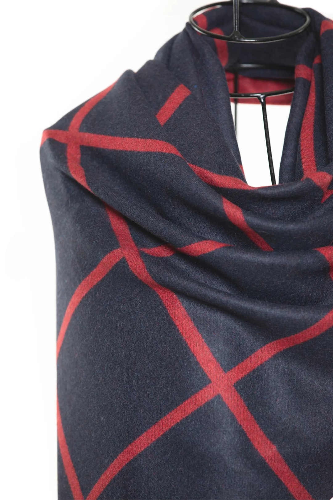 Reversible Mo-shmere Modal Cashmere Checkers Shawl - Dark Navy Red