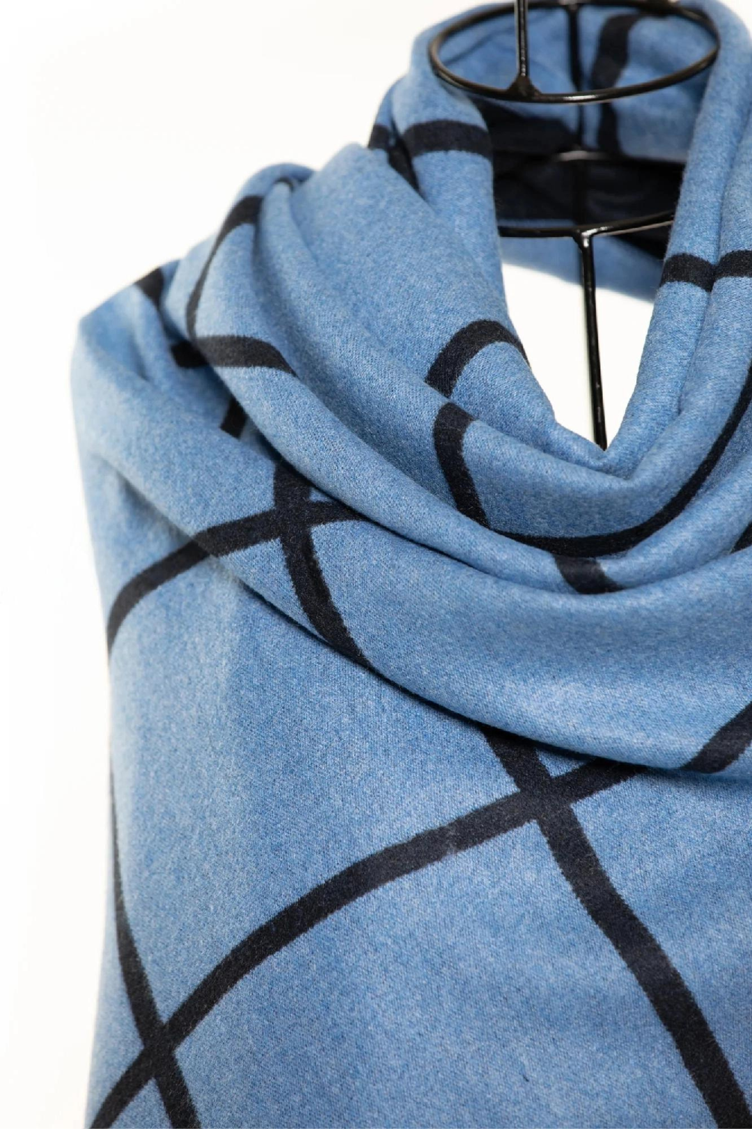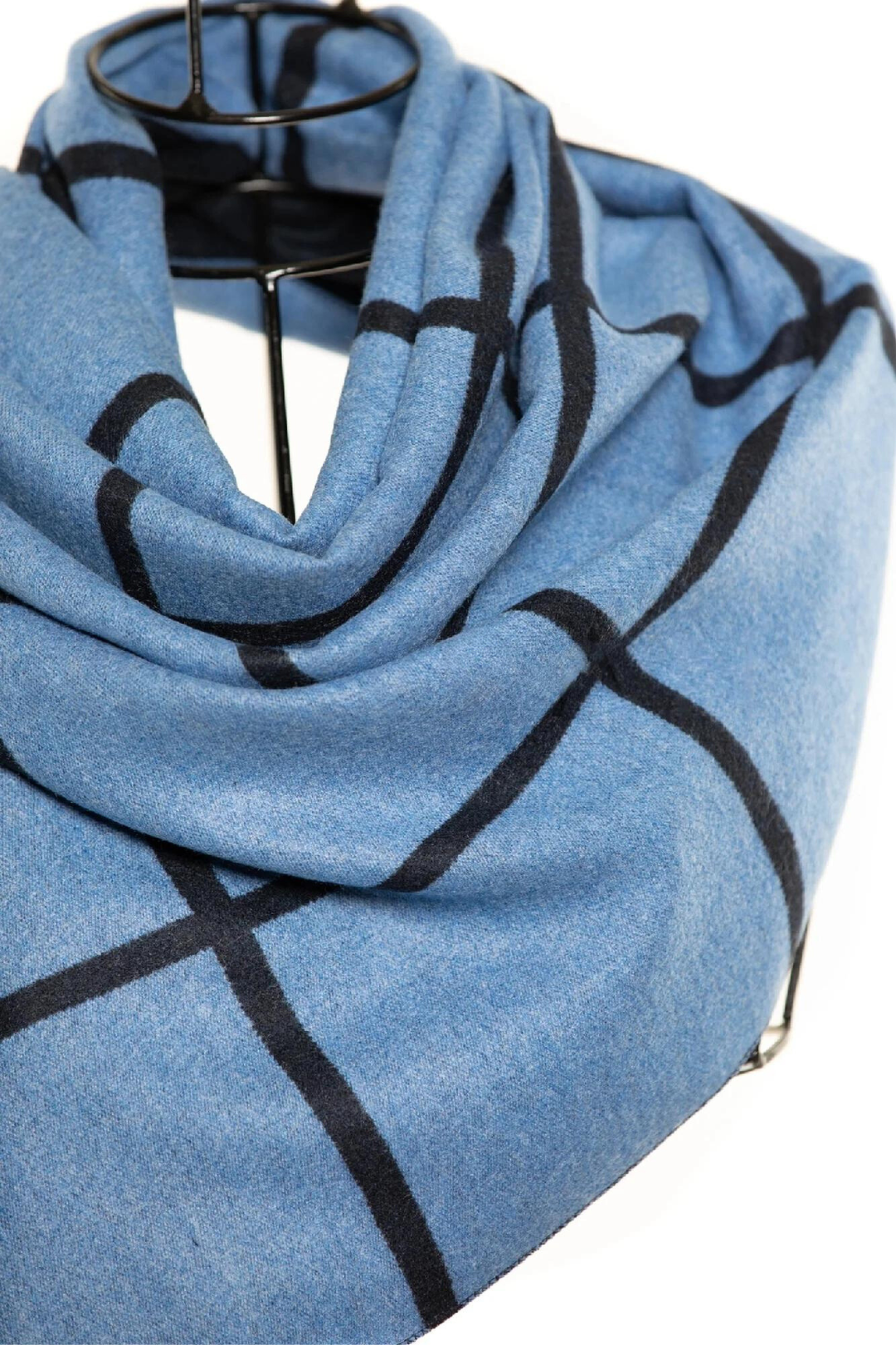 Reversible Mo-shmere Modal Cashmere Checkers Shawl - Navy Blue