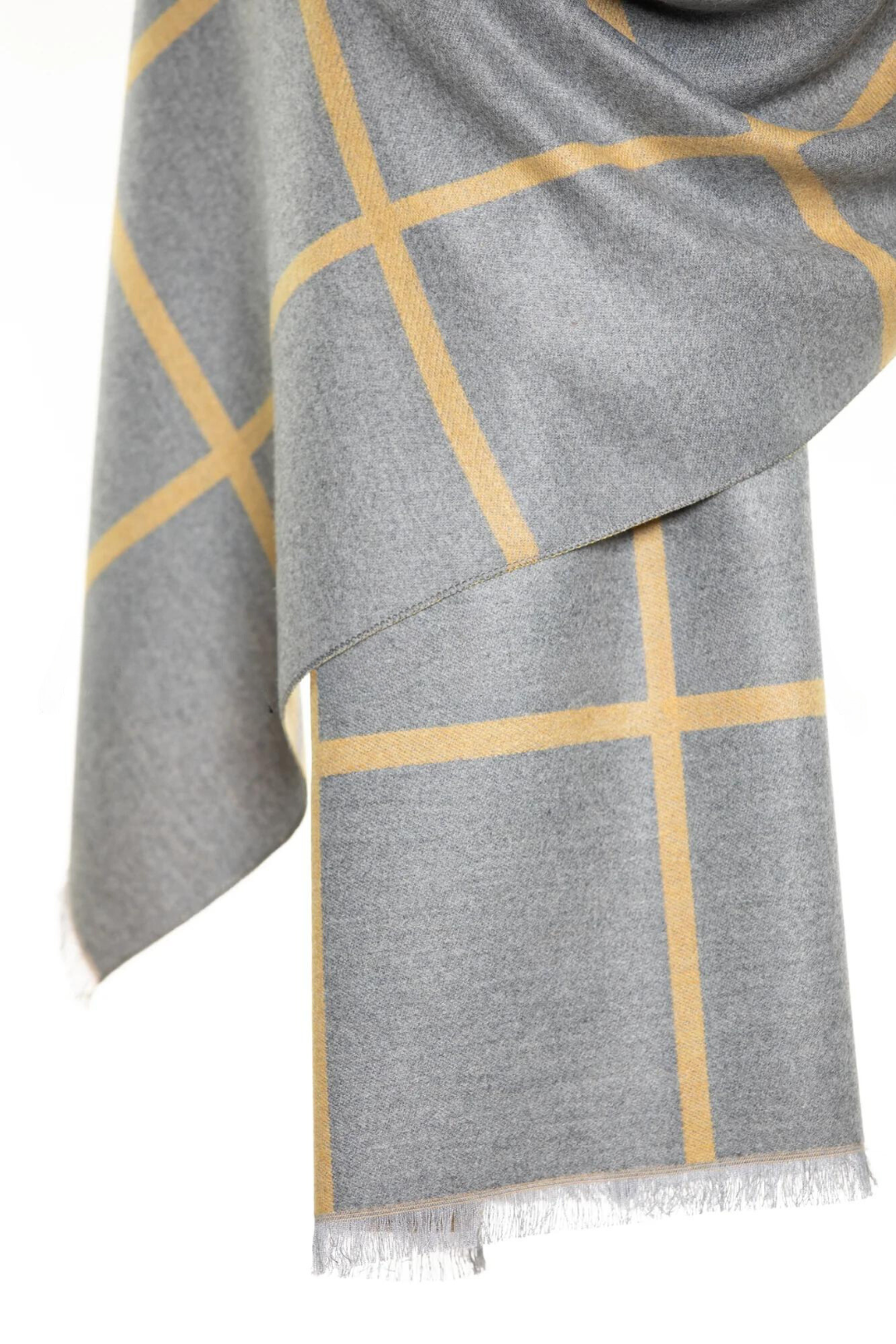 Reversible Mo-shmere Modal Cashmere Checkers Shawl - Mustard Gray