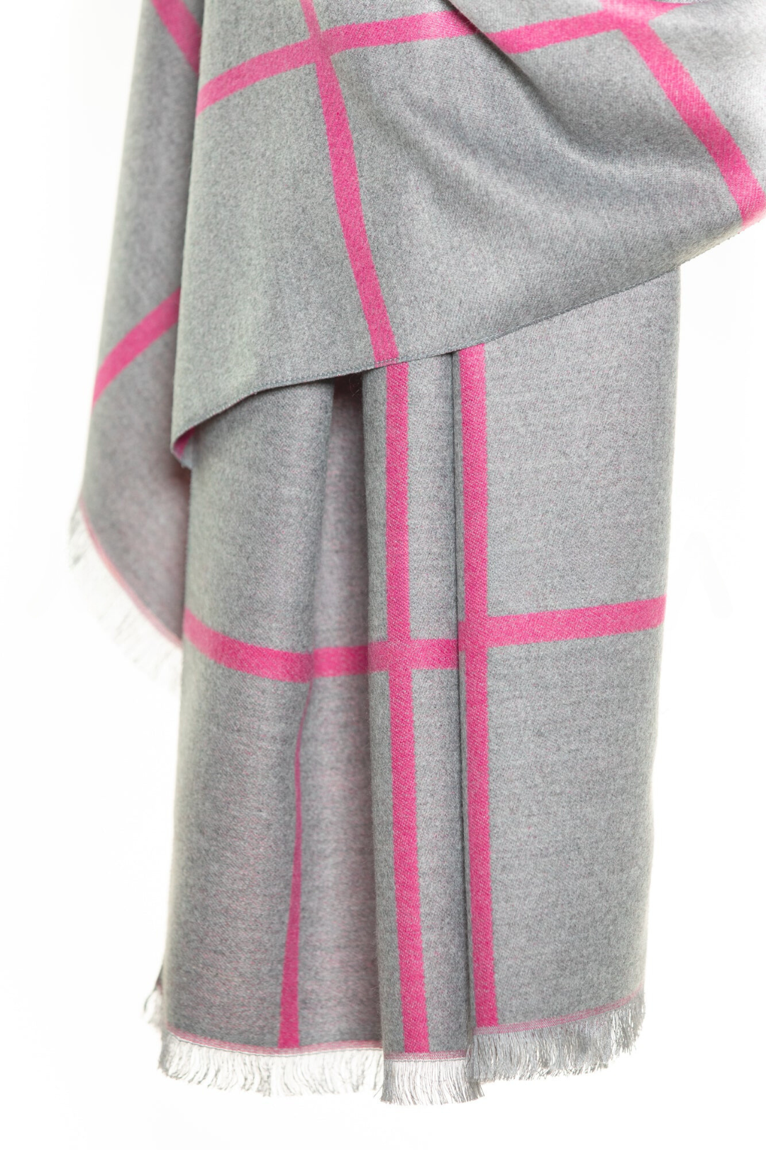 Reversible Mo-shmere Modal Cashmere Checkers Shawl - Gray Fuschia