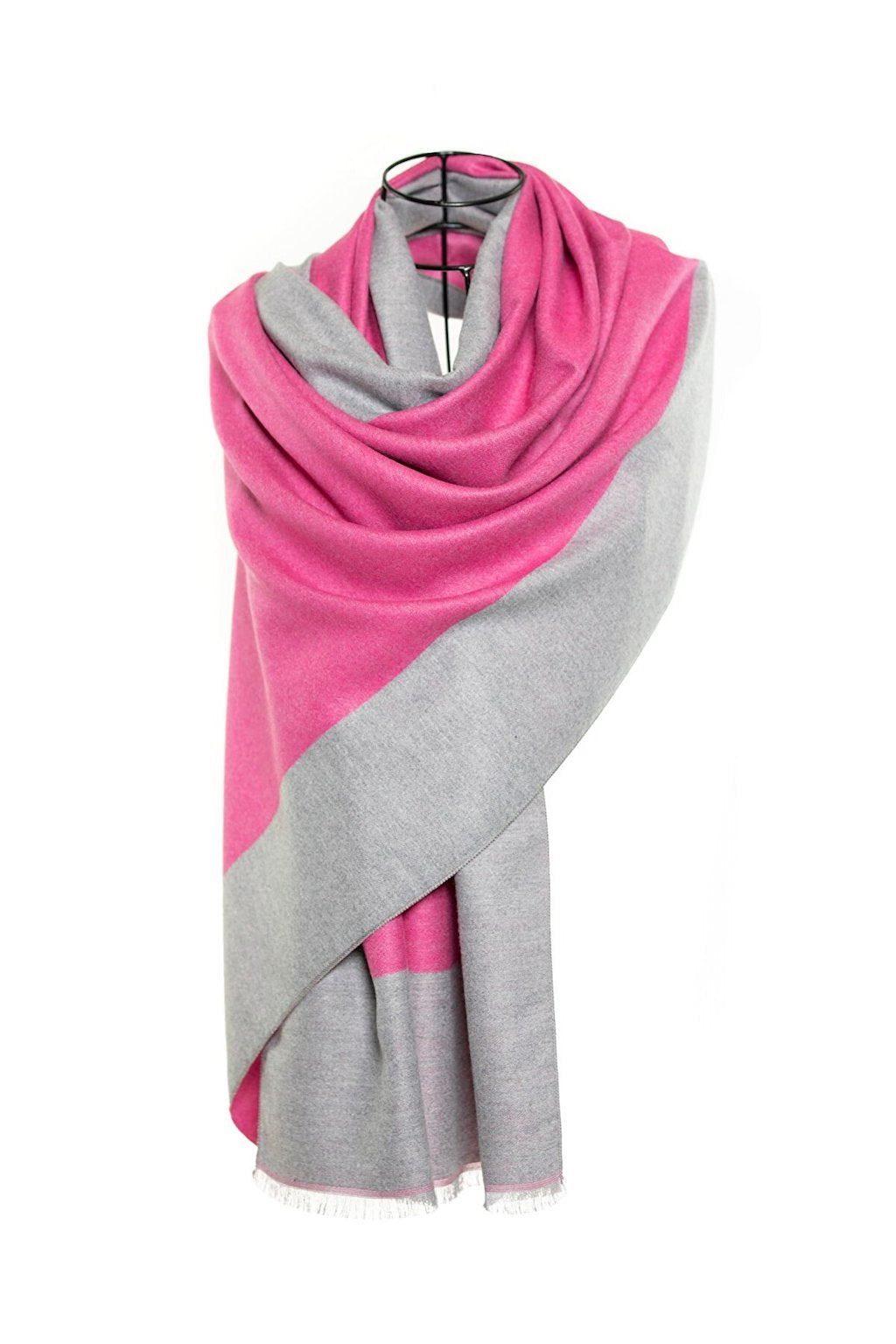 Reversible Mo-shmere Double Rectangle Shawl - Fuschia Light Gray