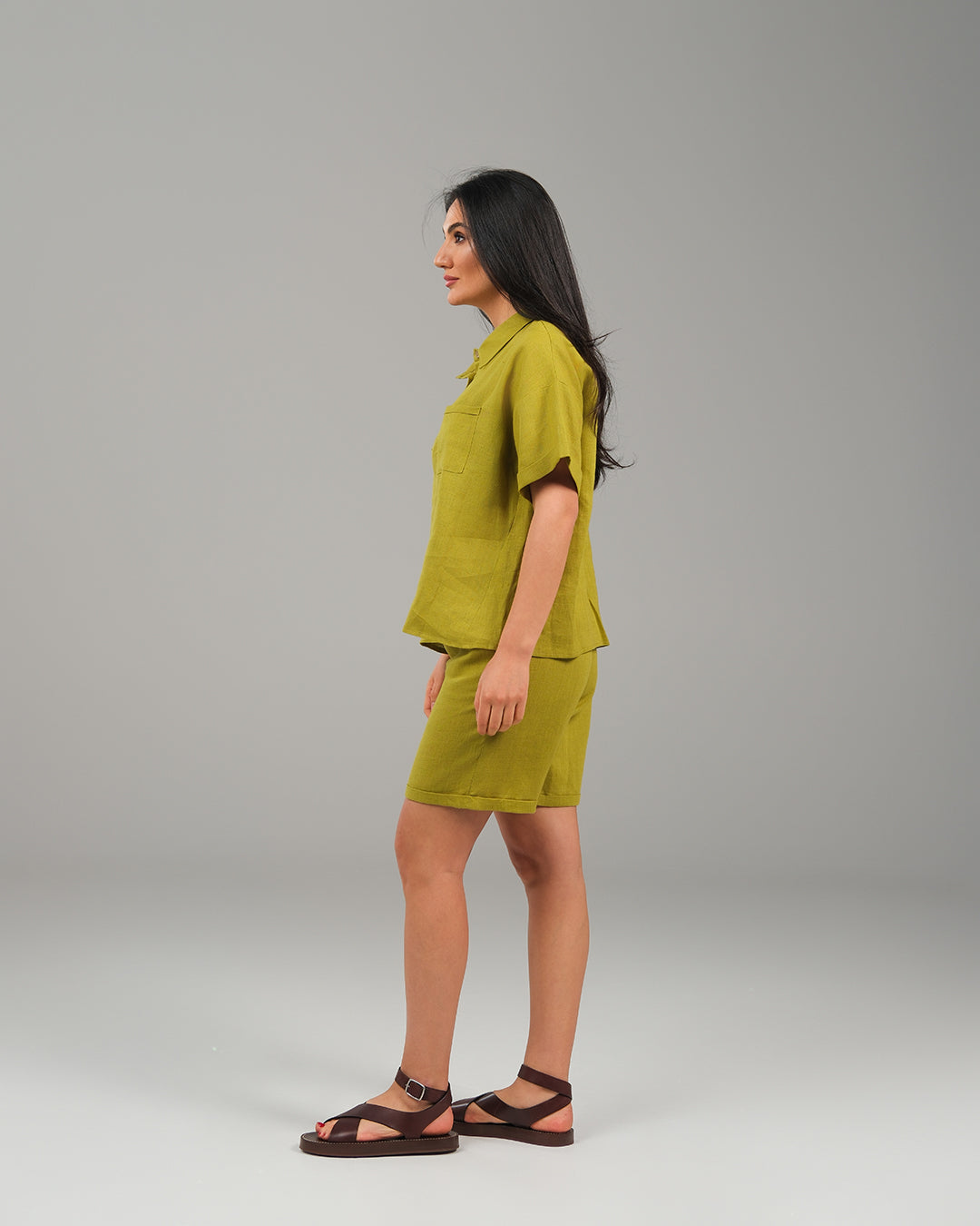 The Soleil Ensemble Shirt & Shorts - Light Olive Green