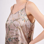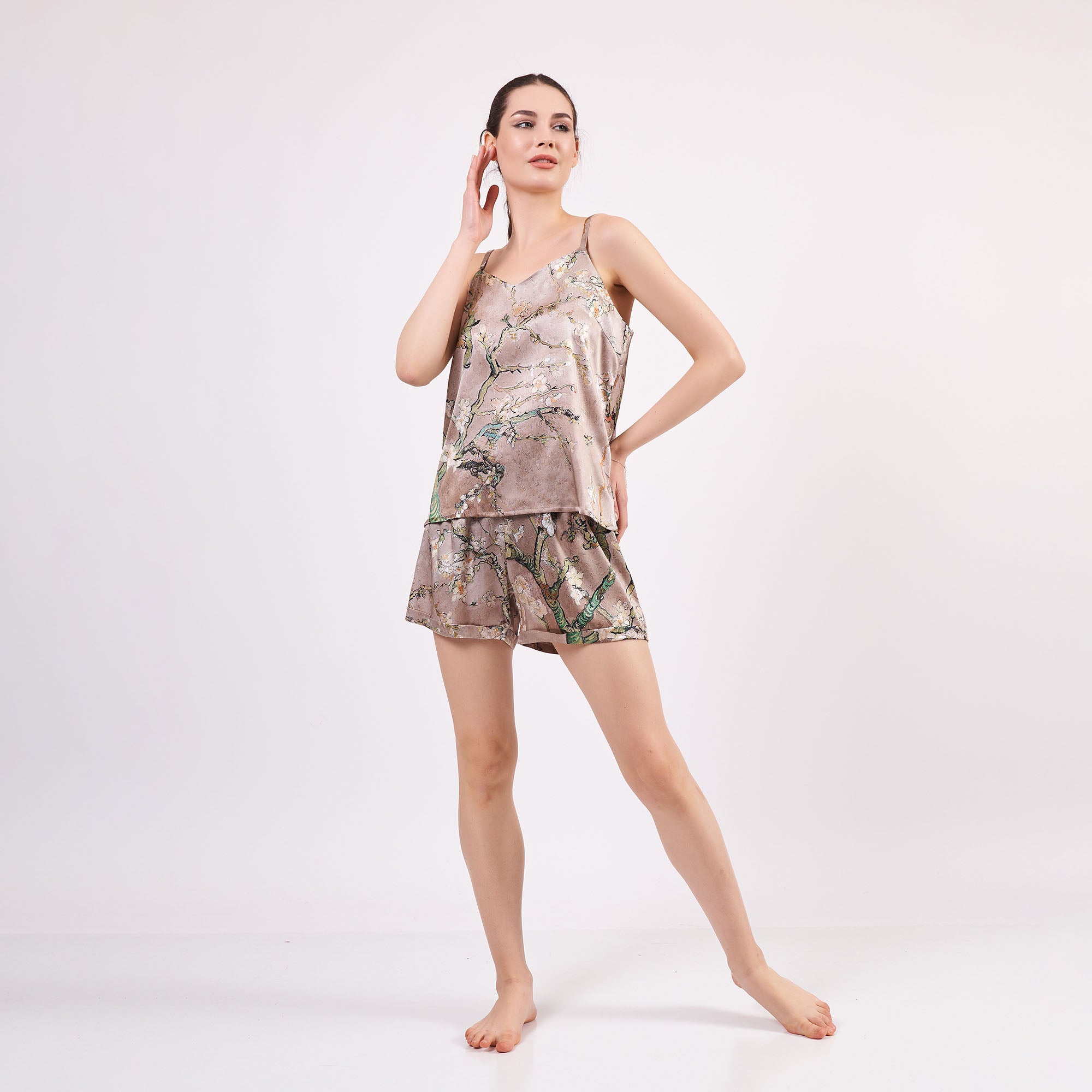 Pure Silk Pyjama Set Tank and Shorts - Almond Blossoms Beige