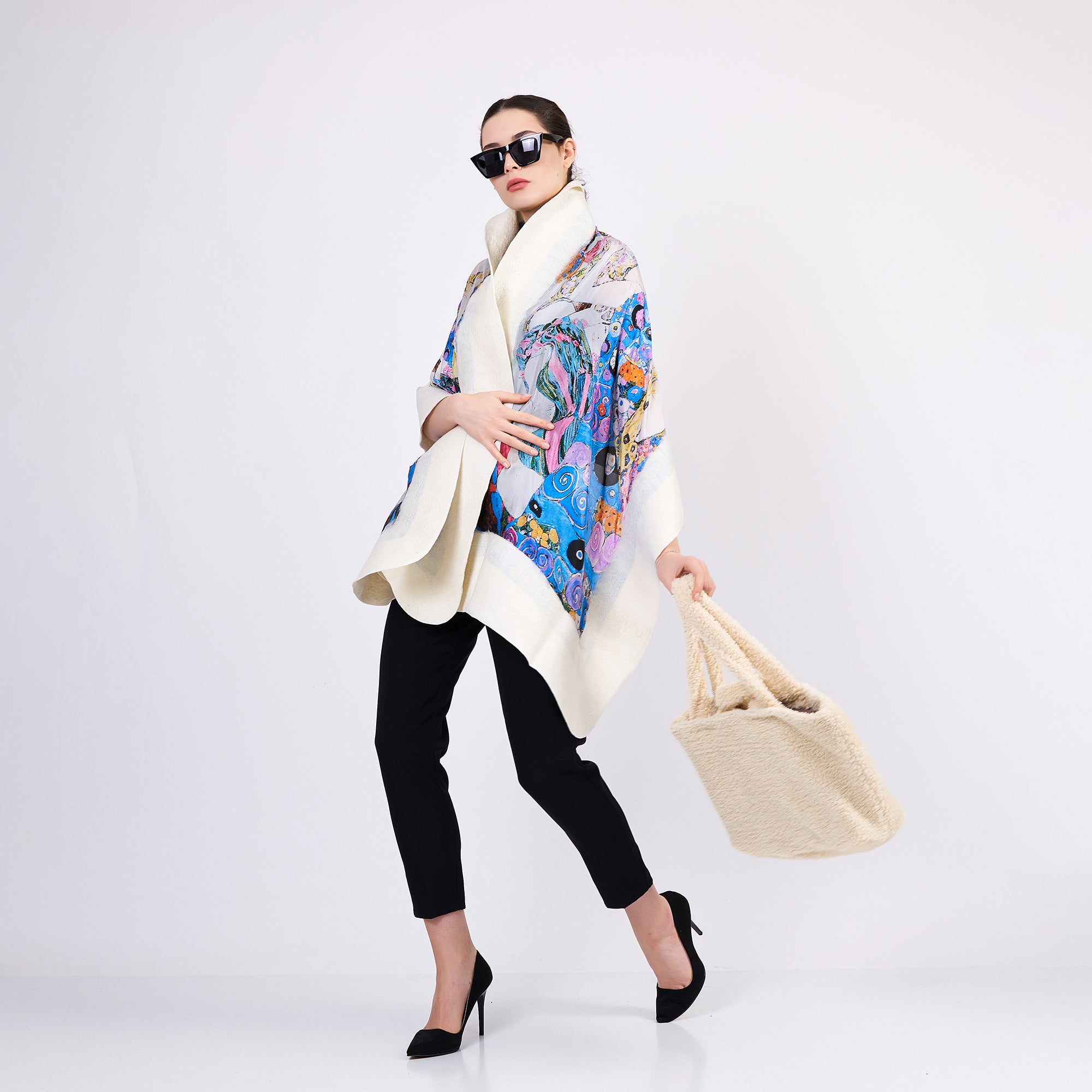 Silk & Merino Felt Shawl -Gustav Klimt The Virgins White
