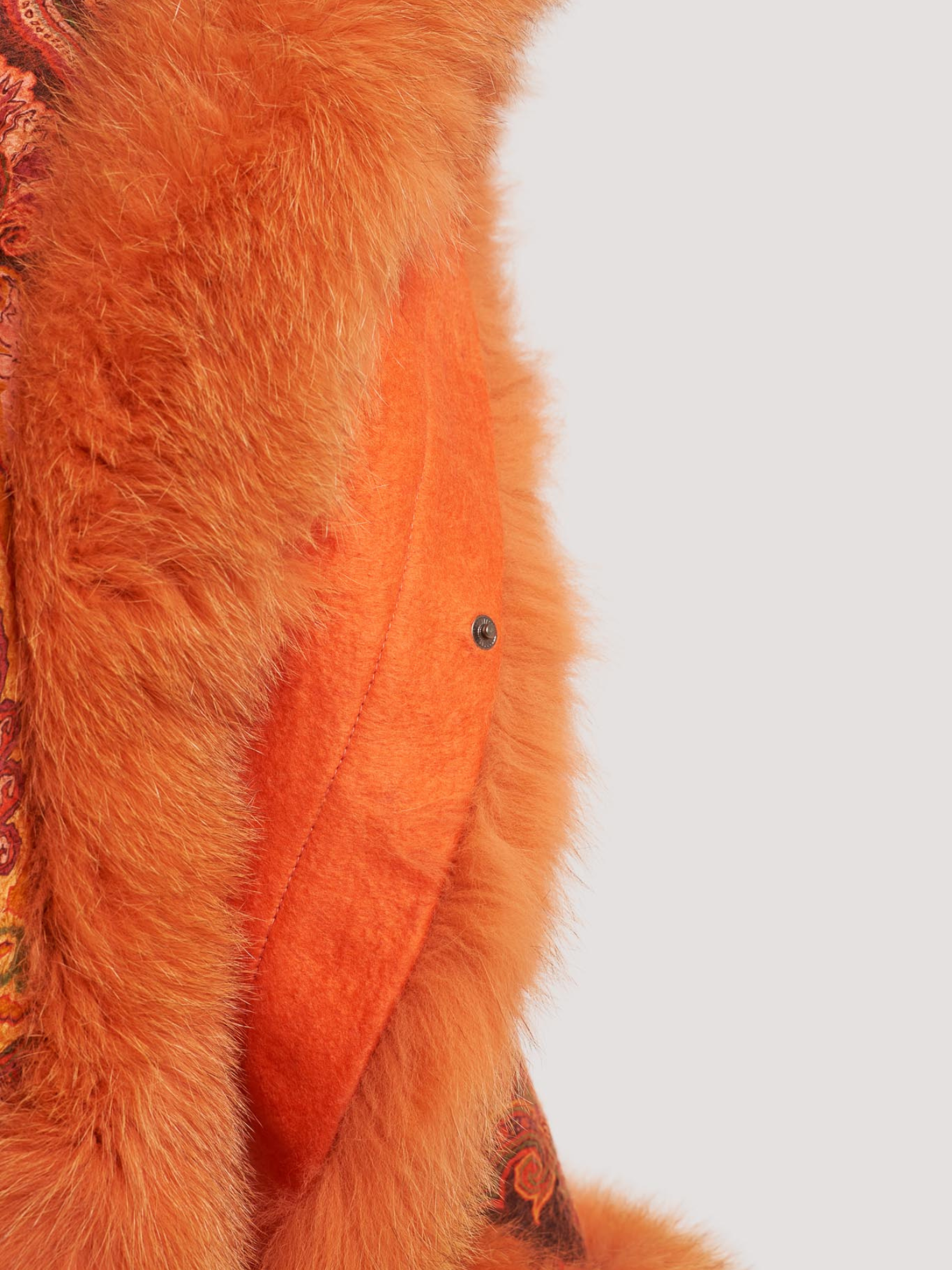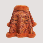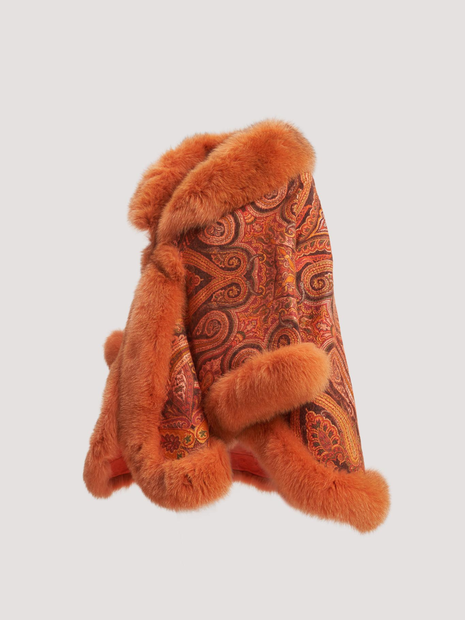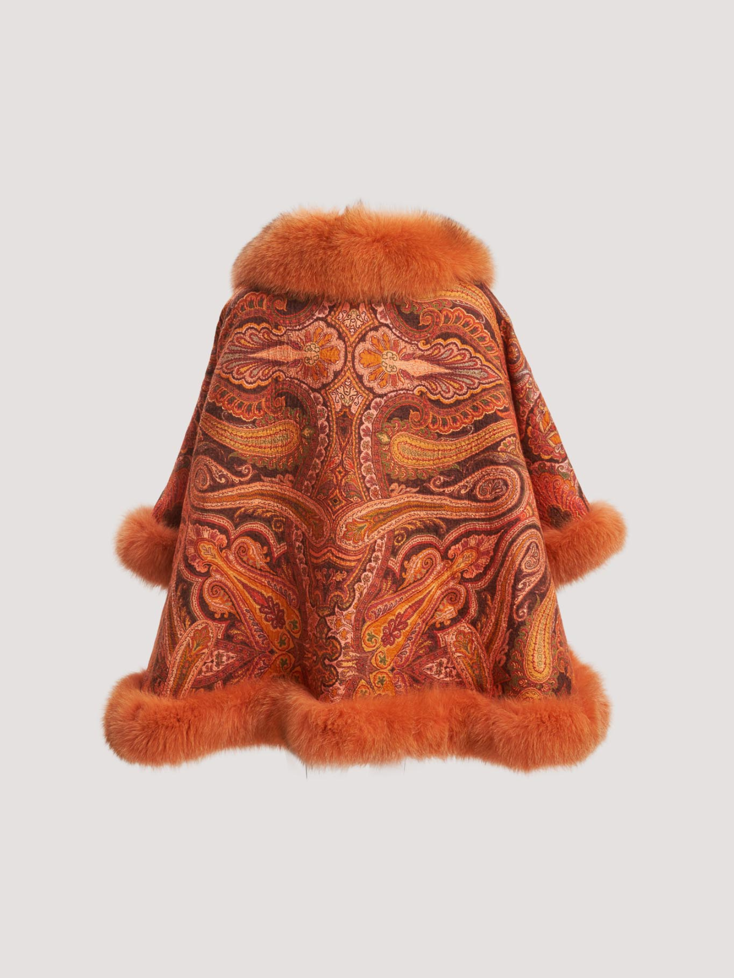 This poncho, crafted with real fox fur, combines elegance and warmth.