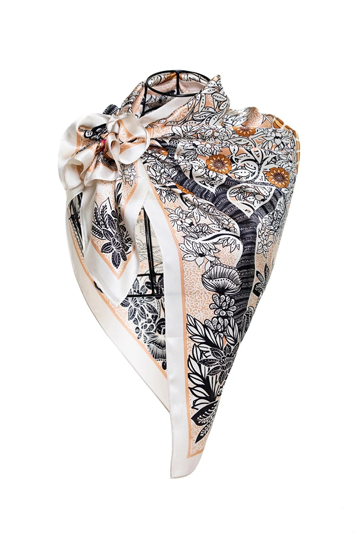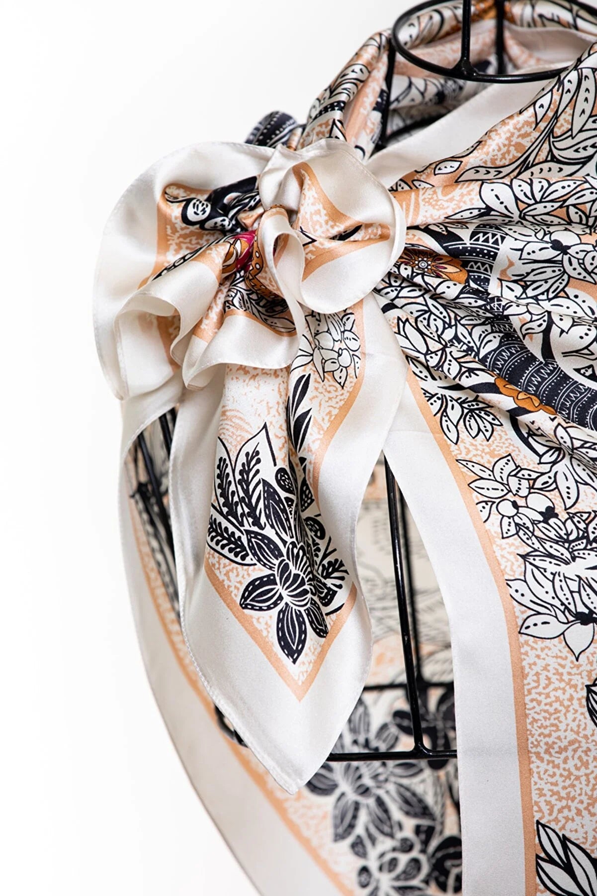 To care for your silk scarf, hand wash it in lukewarm water with a mild soap or silk detergent, rinse thoroughly, and air dry. Do not wring and avoid direct sunlight. Iron on low heat to remove wrinkles.