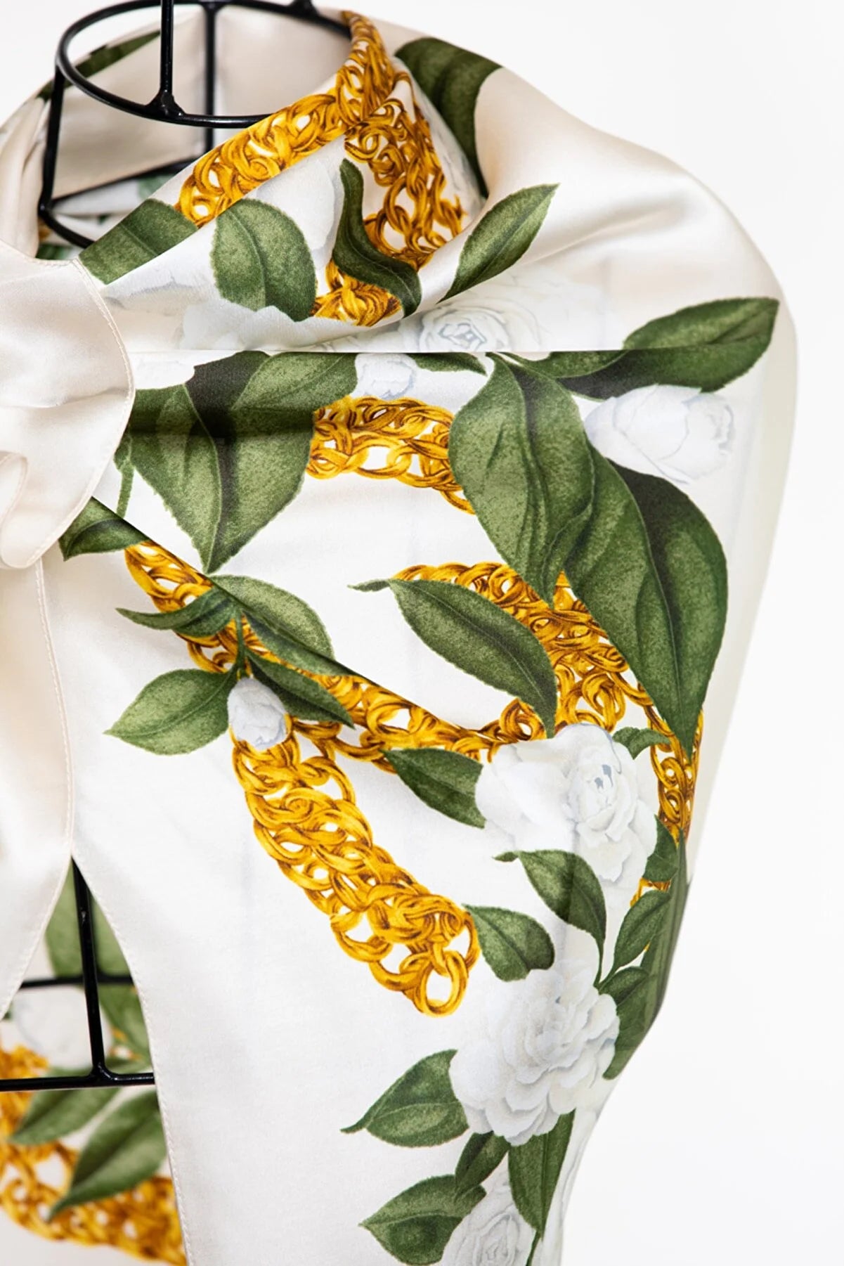 Elevate any outfit with our square silk scarves featuring lively prints. Crafted from high-quality twill silk, these scarves drape beautifully and add a touch of luxury to any look. Choose from a range of colorful and playful designs to make a statement and add personality to your outfit. Versatile and timeless, these scarves are a must-have accessory for any fashion-forward individual.