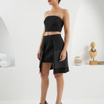 The Dimensions Skirt that embraces sharp edges, fine lines, and dimensional multi-layering. This skirt is a showcase of classical symmetry, marrying timeless aesthetics with contemporary design. The pleats add a dynamic element, creating movement and depth for a truly elegant look.
