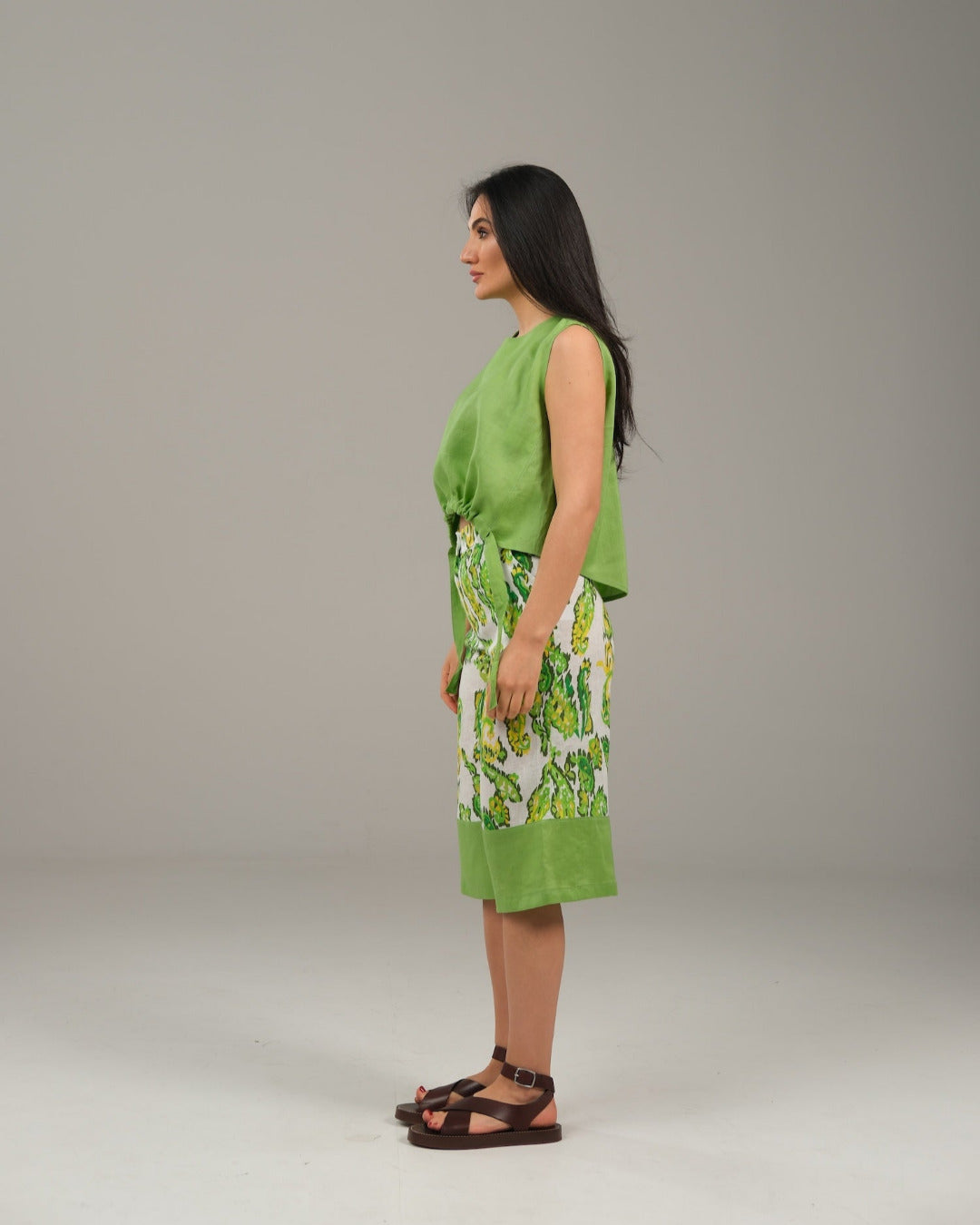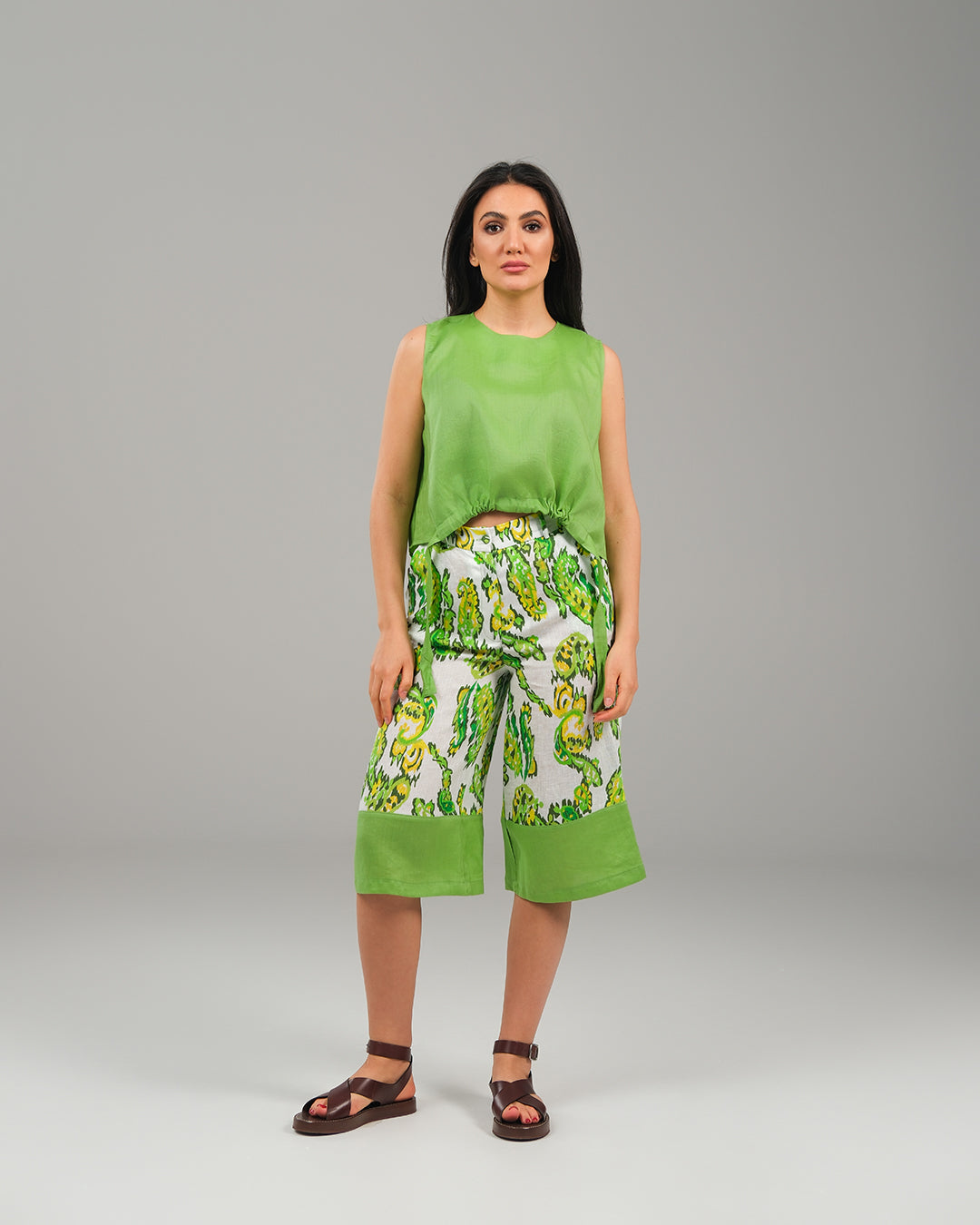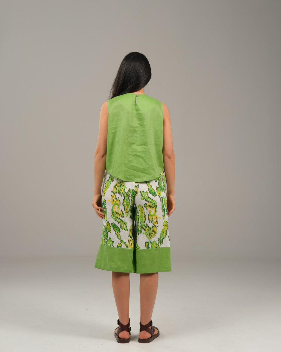 The Harmony Ensemble Tie Front Blouse & Culottes Pants - Green & Green Paisley