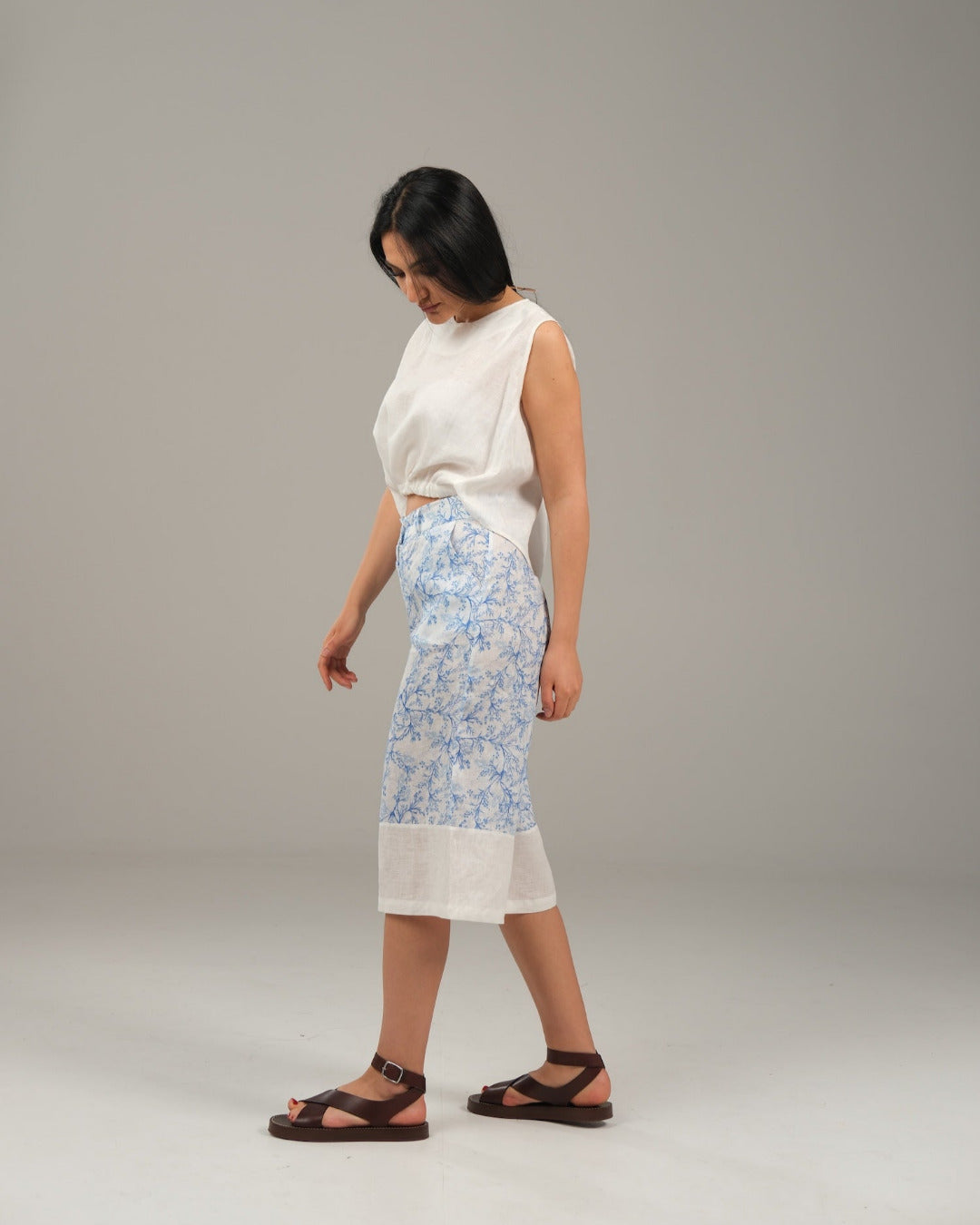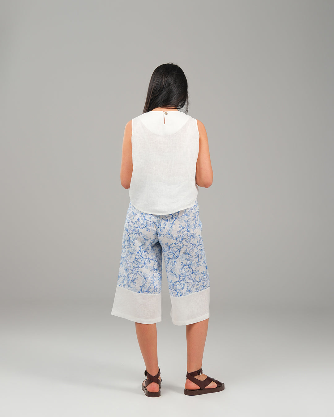 A sophisticated take on relaxed summer dressing. These wide-leg culottes feature a striking colorblock hem, offering a modern twist to a classic silhouette. Crafted from airy linen, they provide all-day comfort and effortless movement.