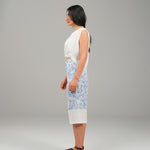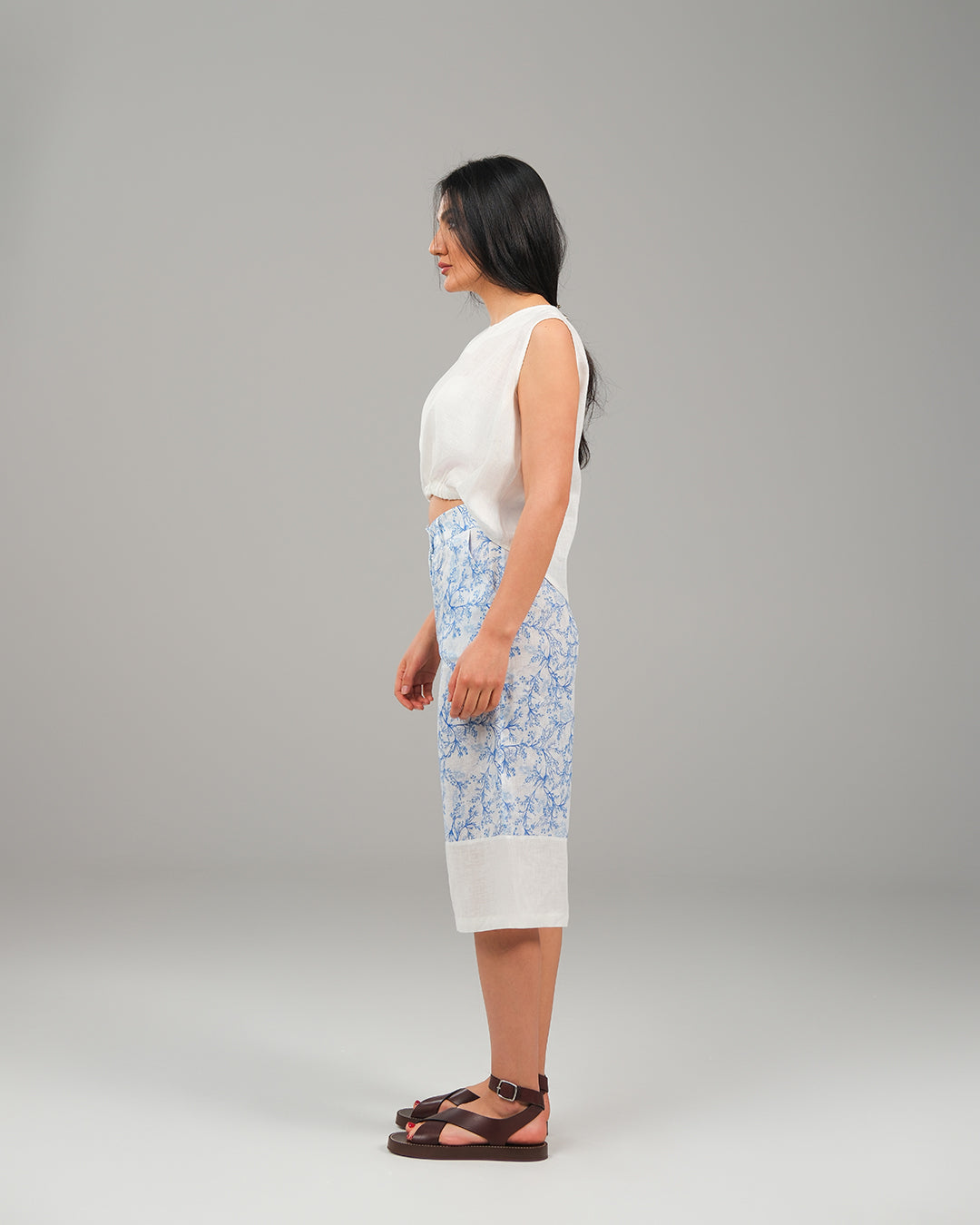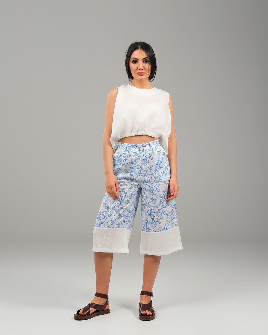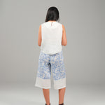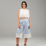 The Harmony Ensemble Tie Front Blouse & Culottes Pants - White & White Blue