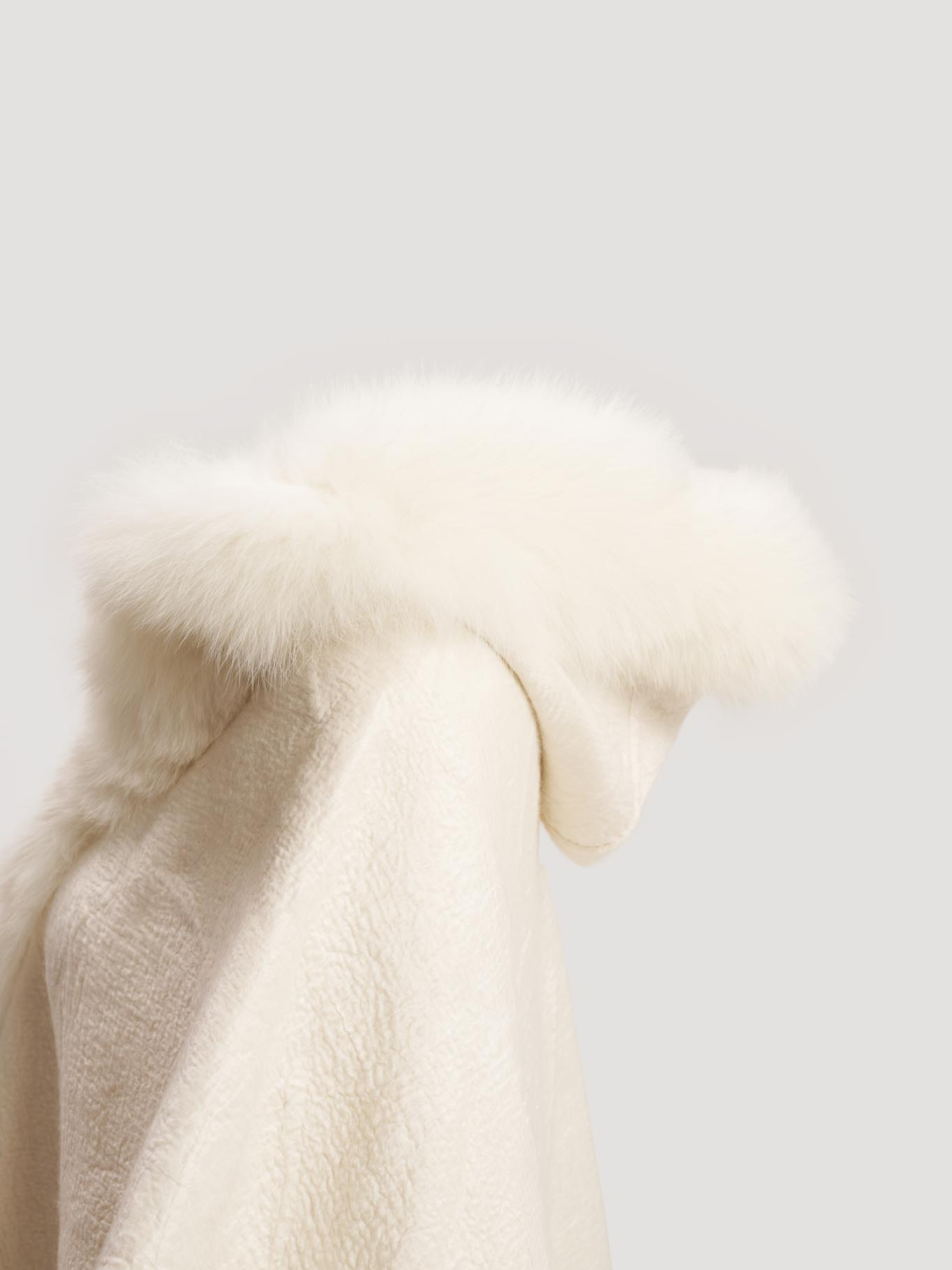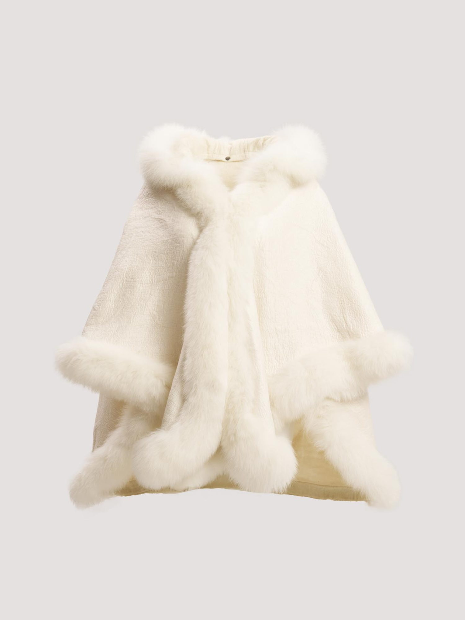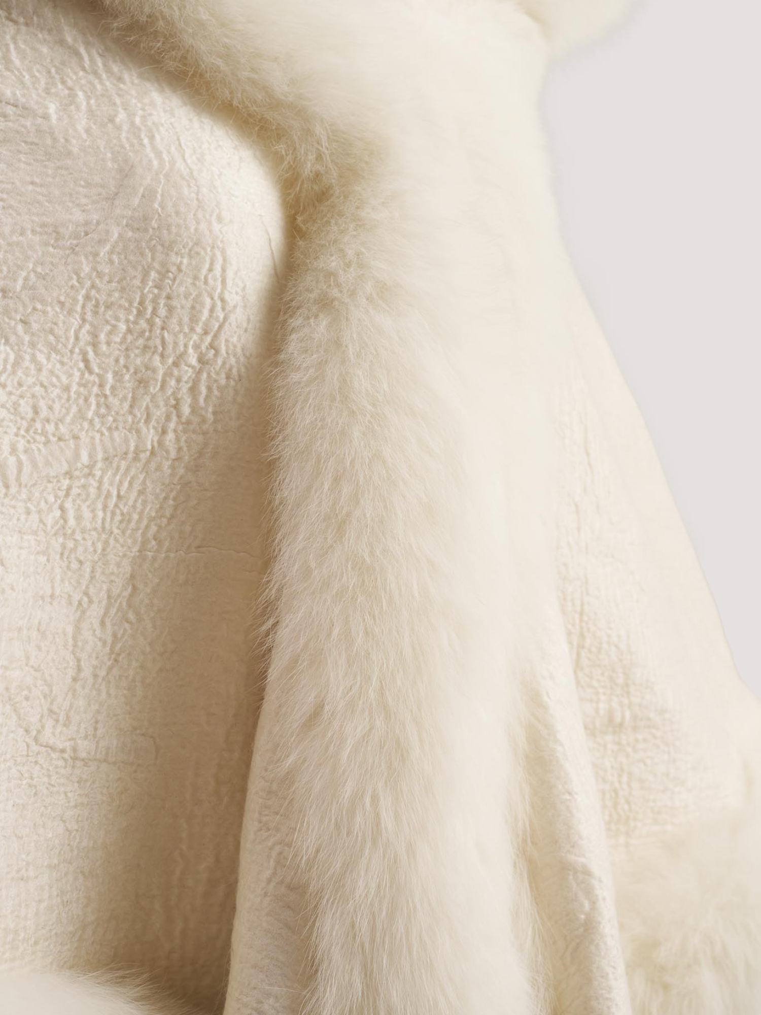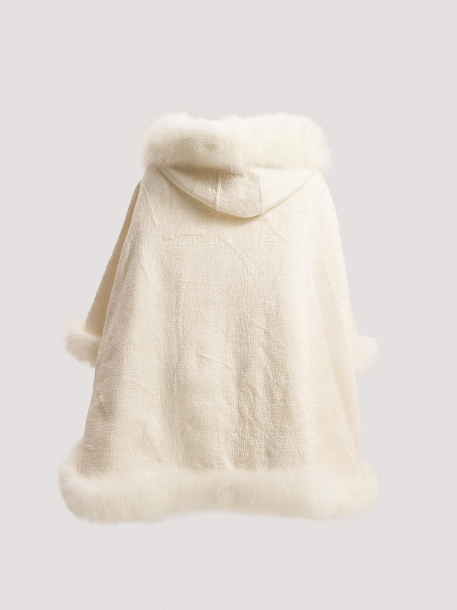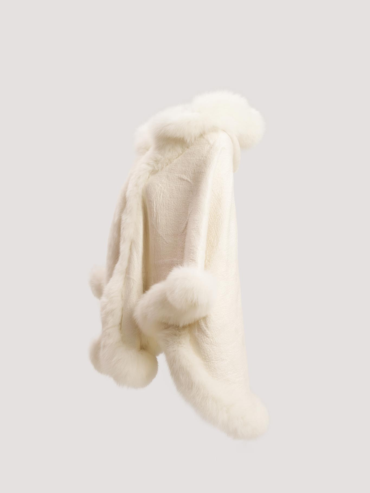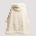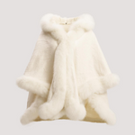 Merino Felt Fox Fur Hooded Poncho - Snow White