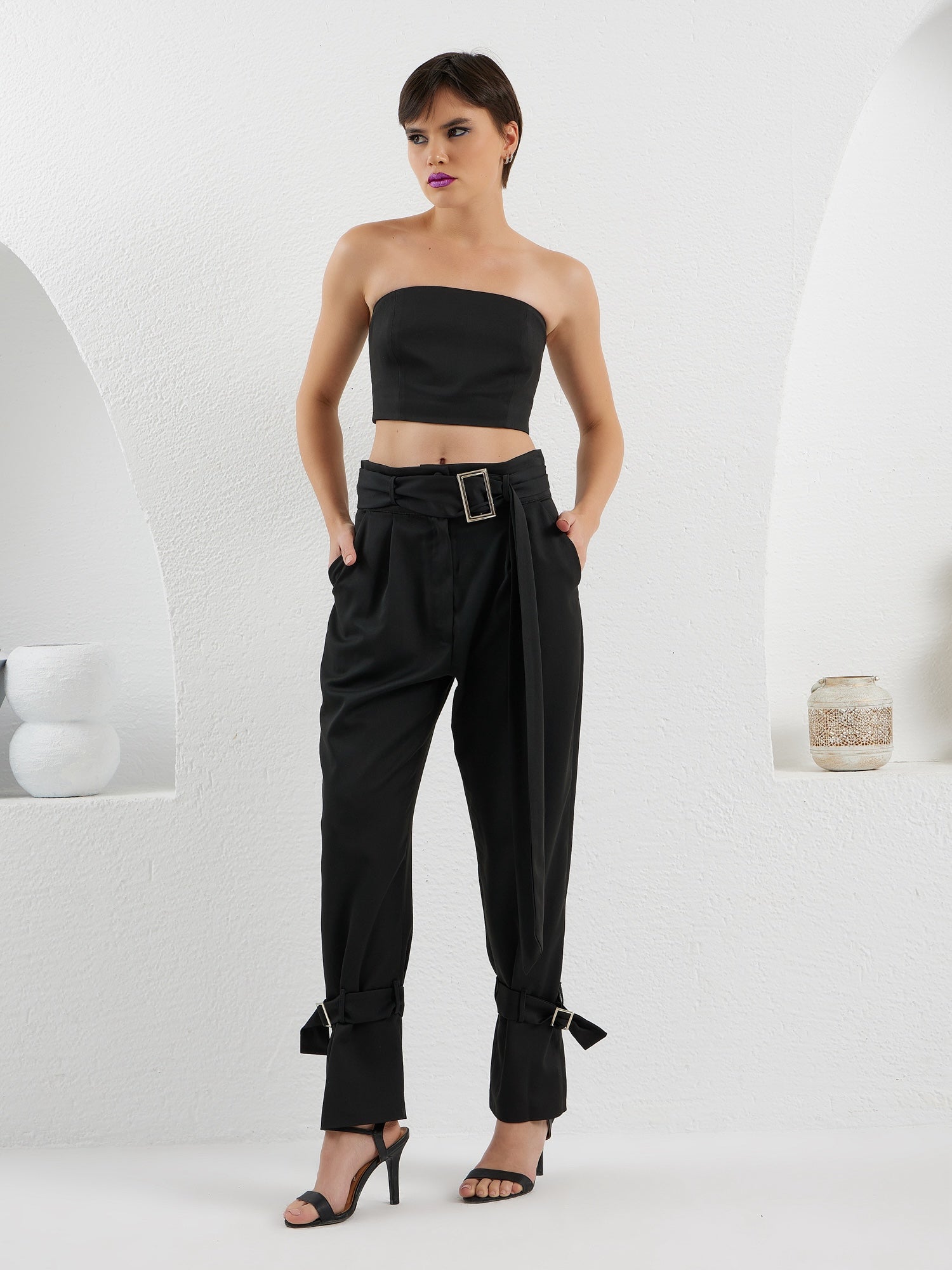 A chic and daring Corset crop top crafted in a tube-style silhouette, exuding elegance and boldness. Easily match with any other ensemble or as a standalone top.