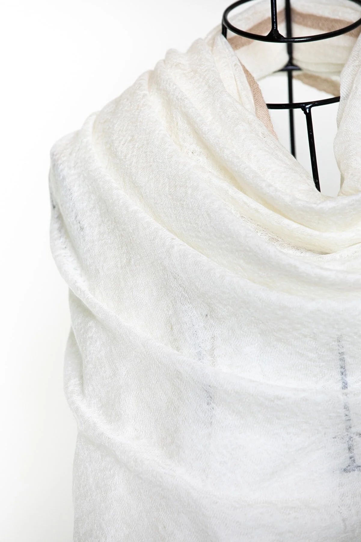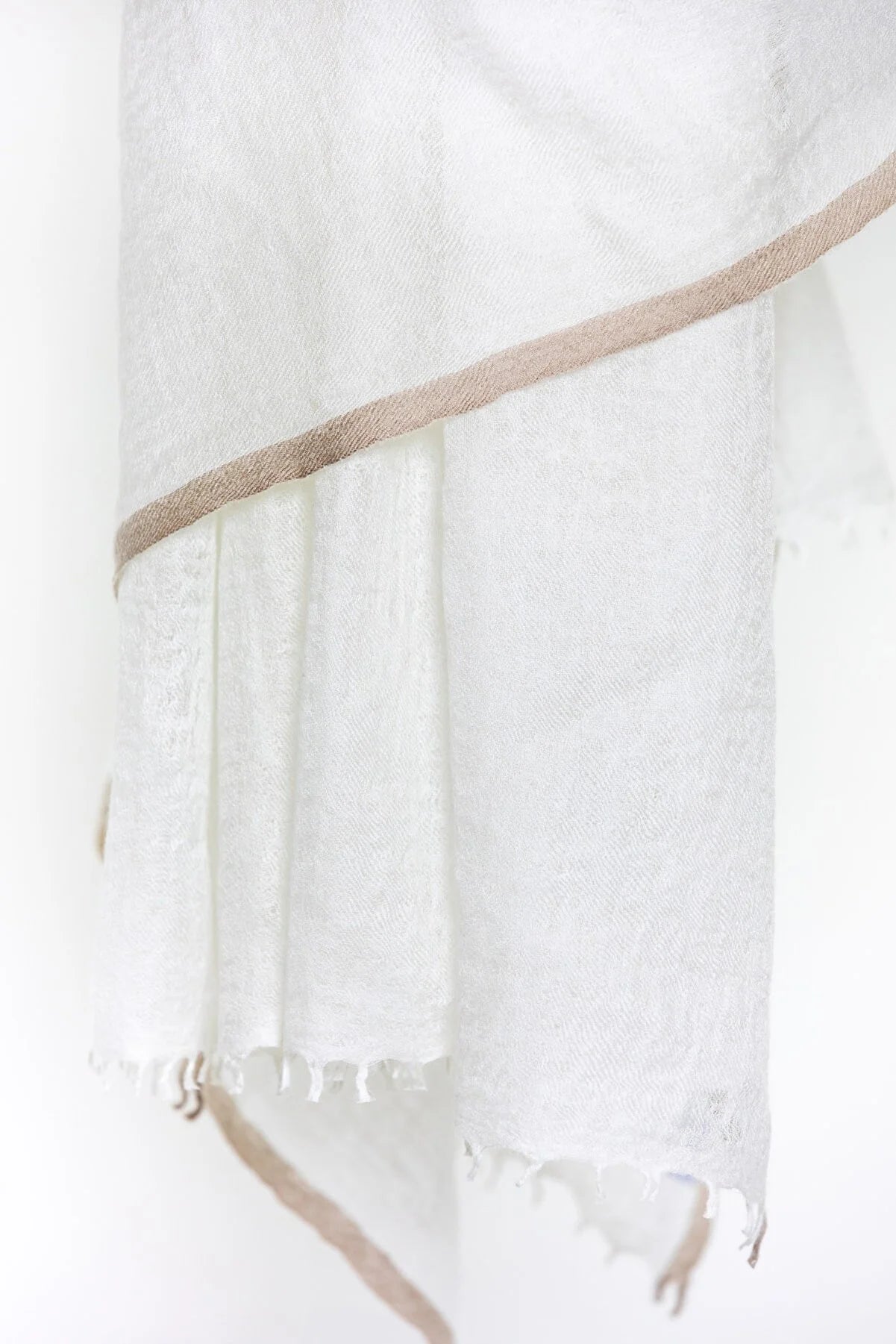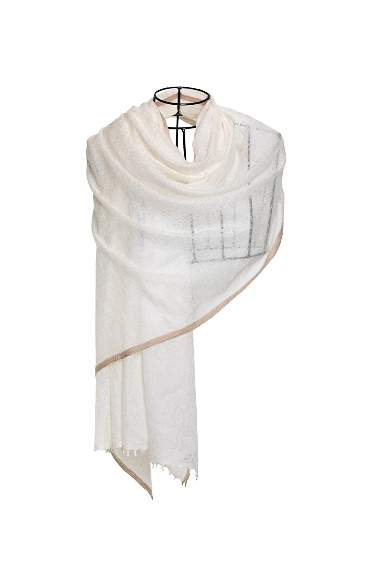 Bordered Sparge Baby Cashmere Shawl - Ivory Brown