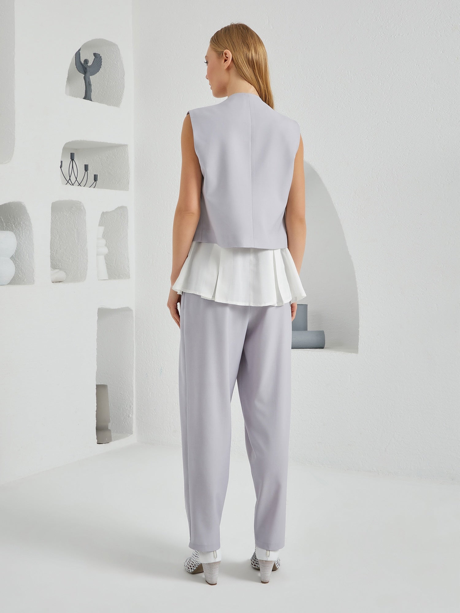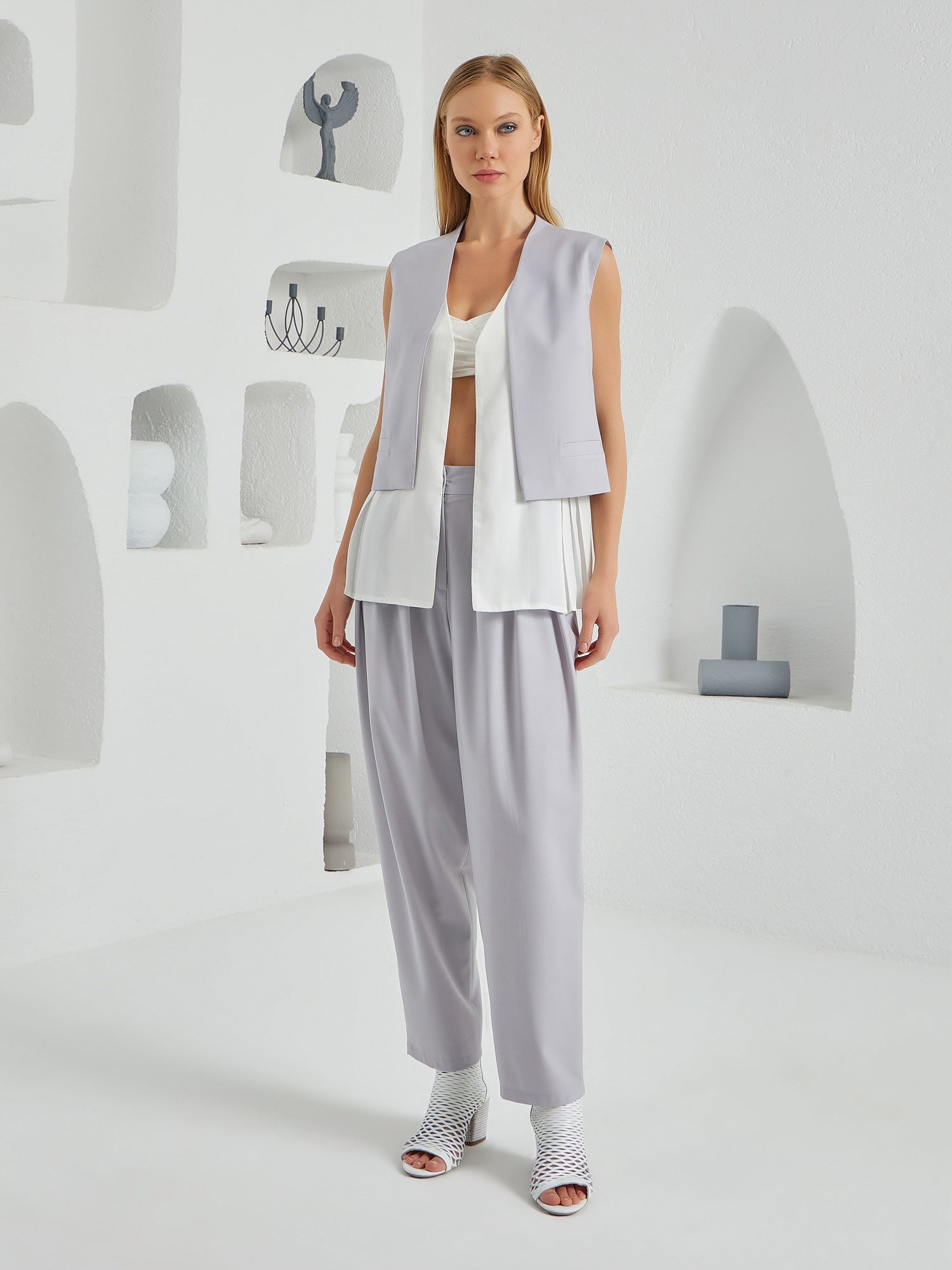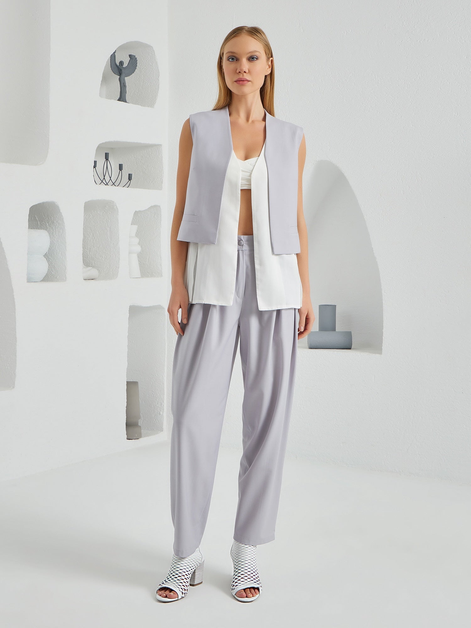 Flow Three Piece Suit Ensemble - Light Gray & White