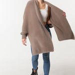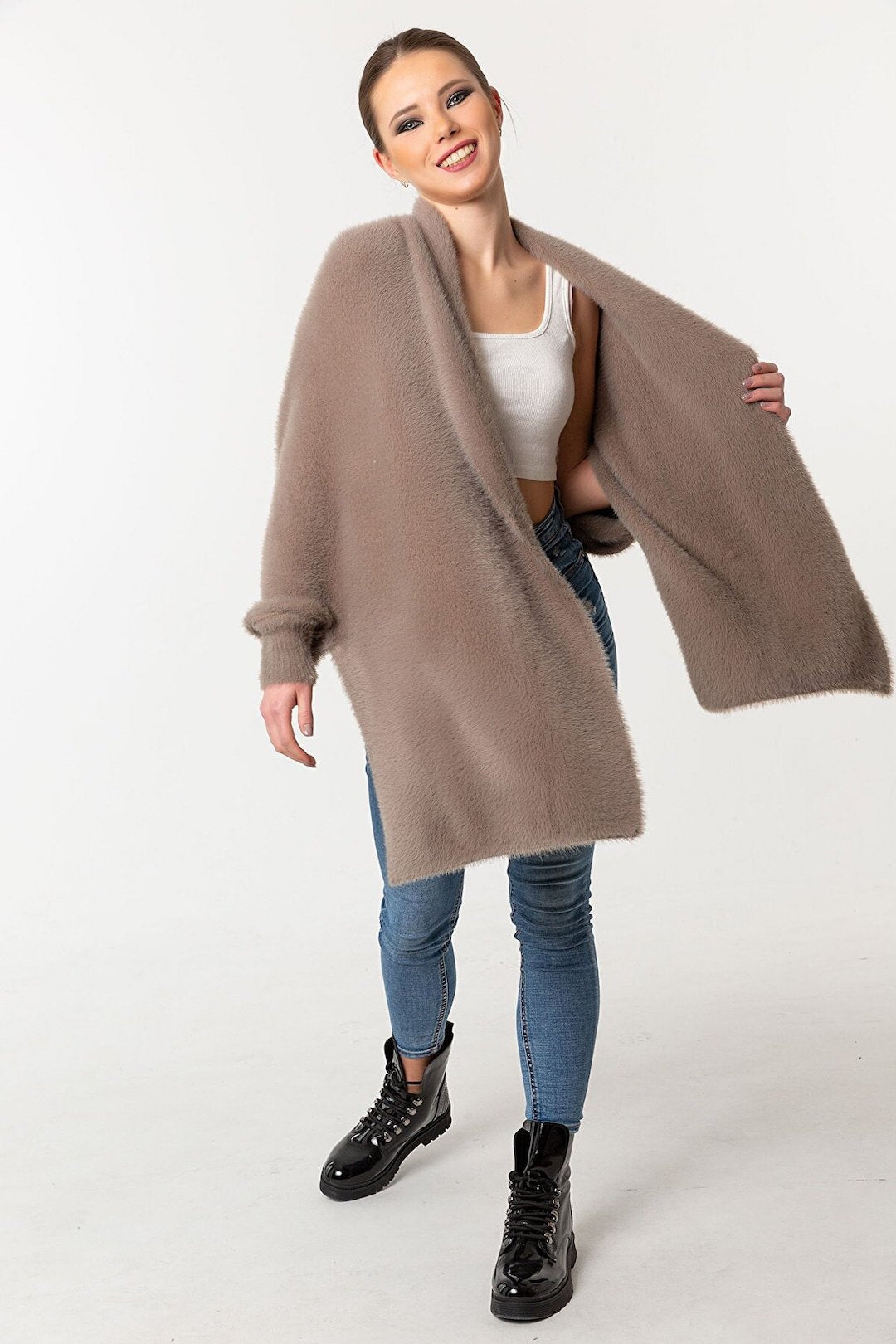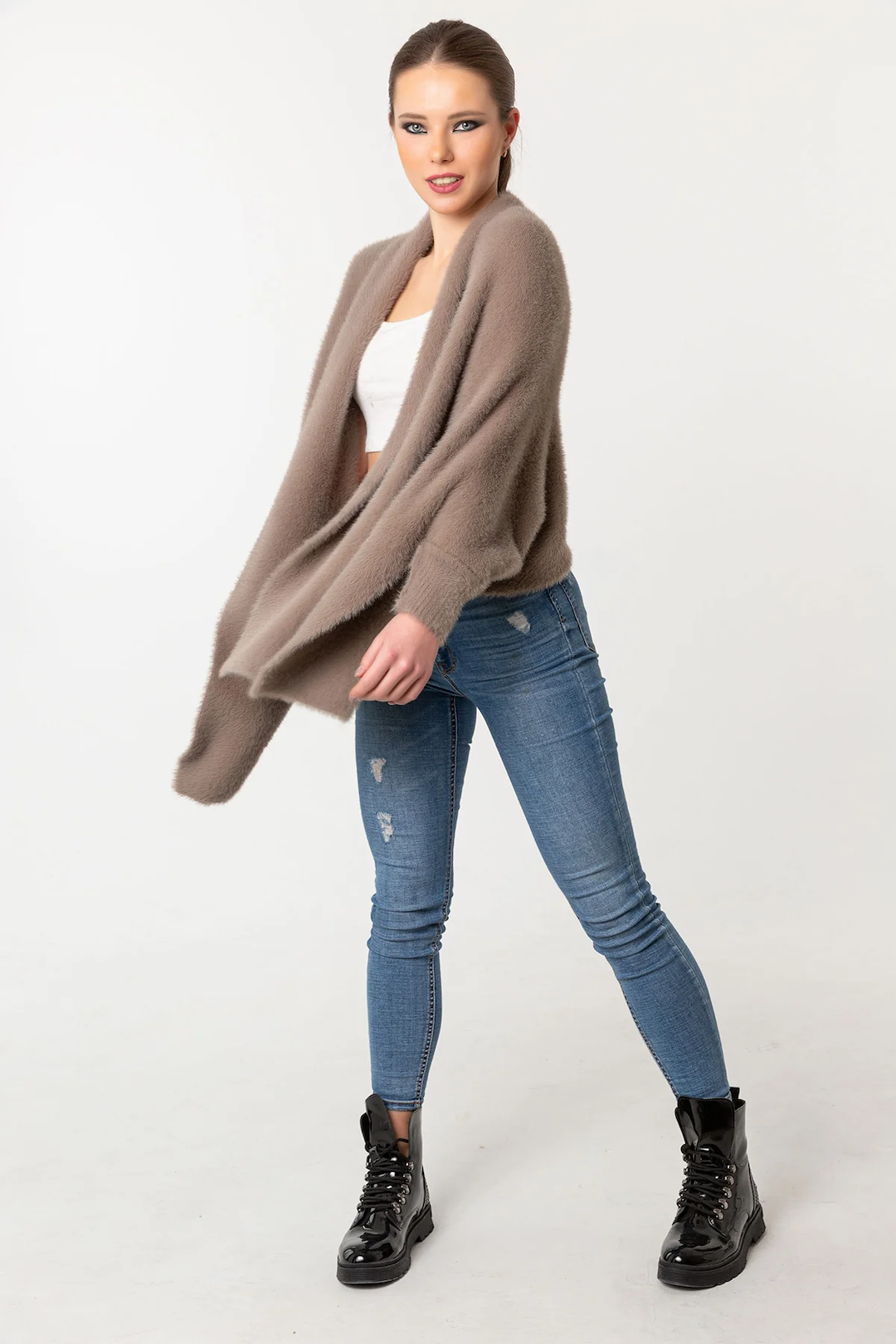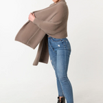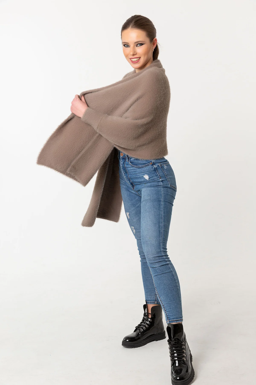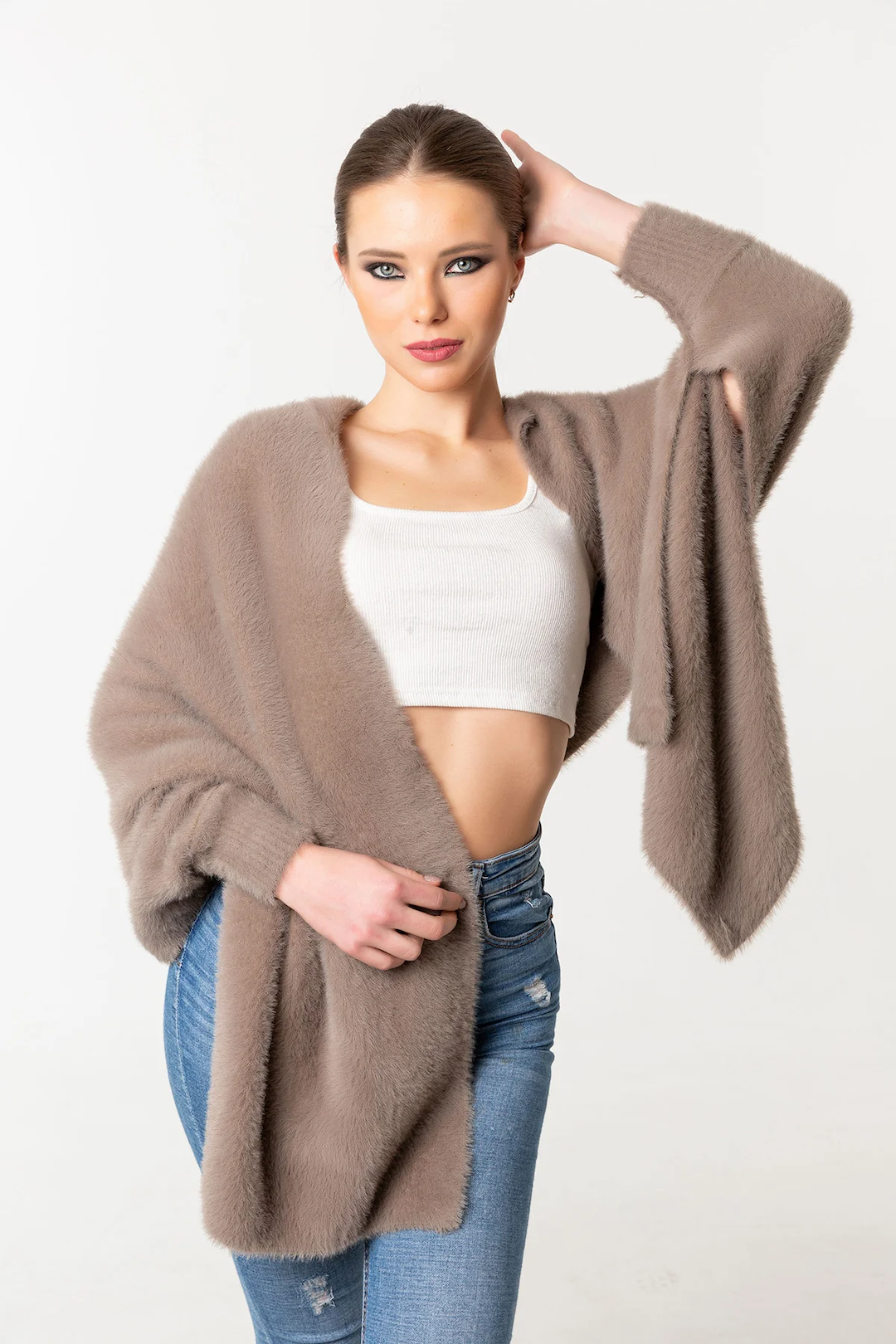 Fuzzy Poncho Shawl with Sleeves - Camel
