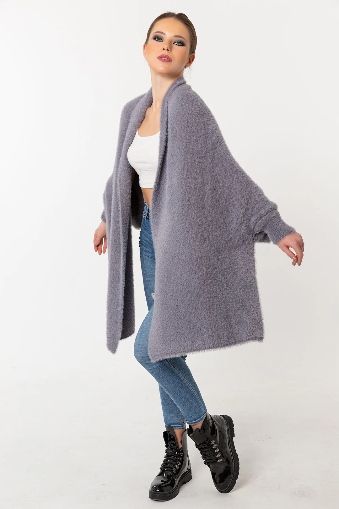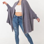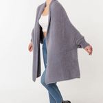 Fuzzy Poncho Shawl with Sleeves - Gray