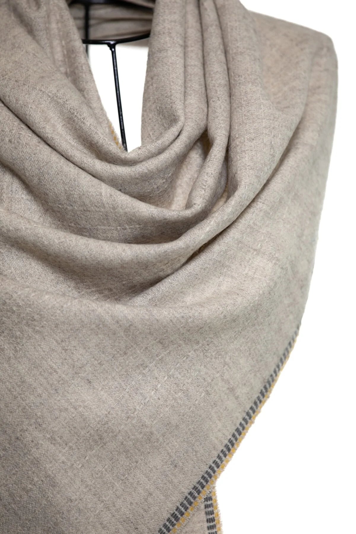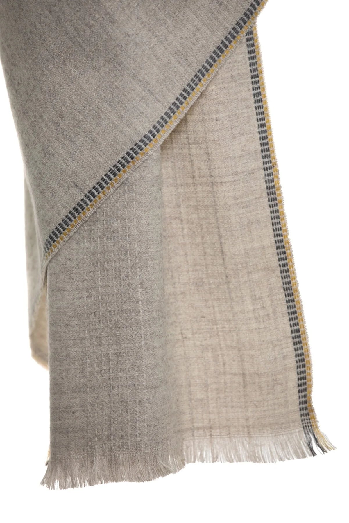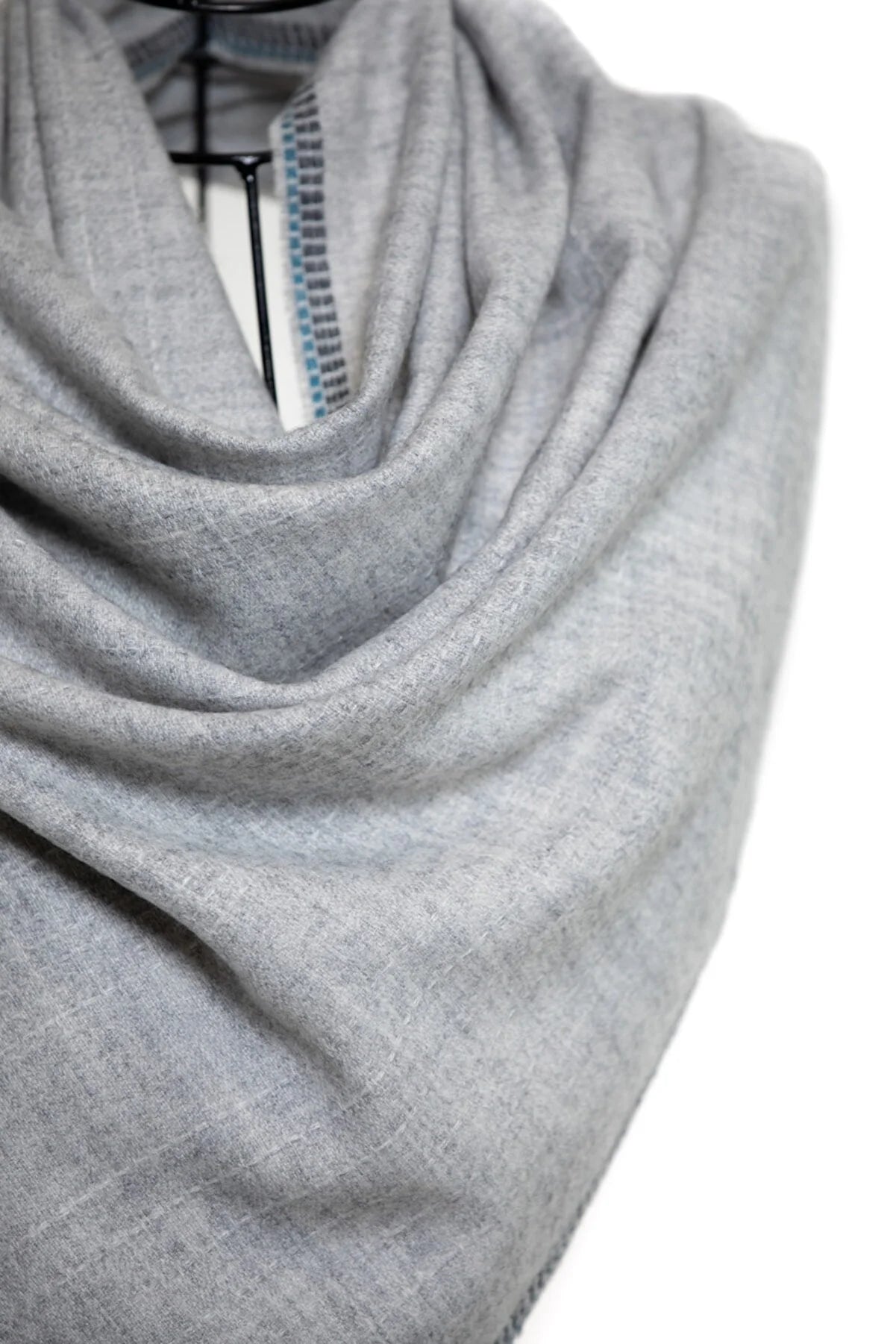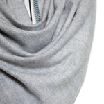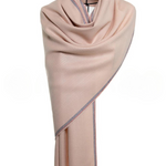 Reversible Modal & Cashmere. The mix of the fabric leads to an amazingly soft breathable shawl. A 10% Cashmere 90% Modal Mix for an ultimate silky feel.