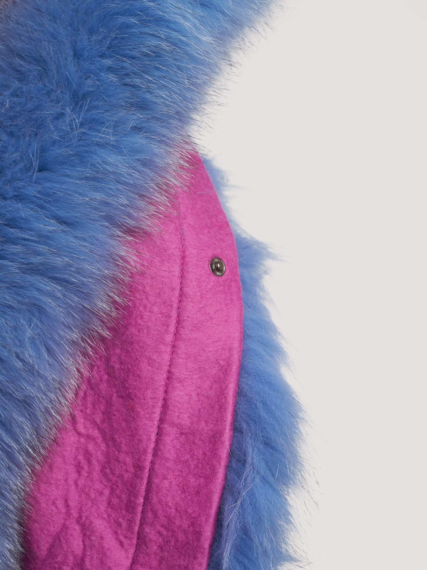 Merino Felt Fox Fur Hooded Poncho - Endo Purple