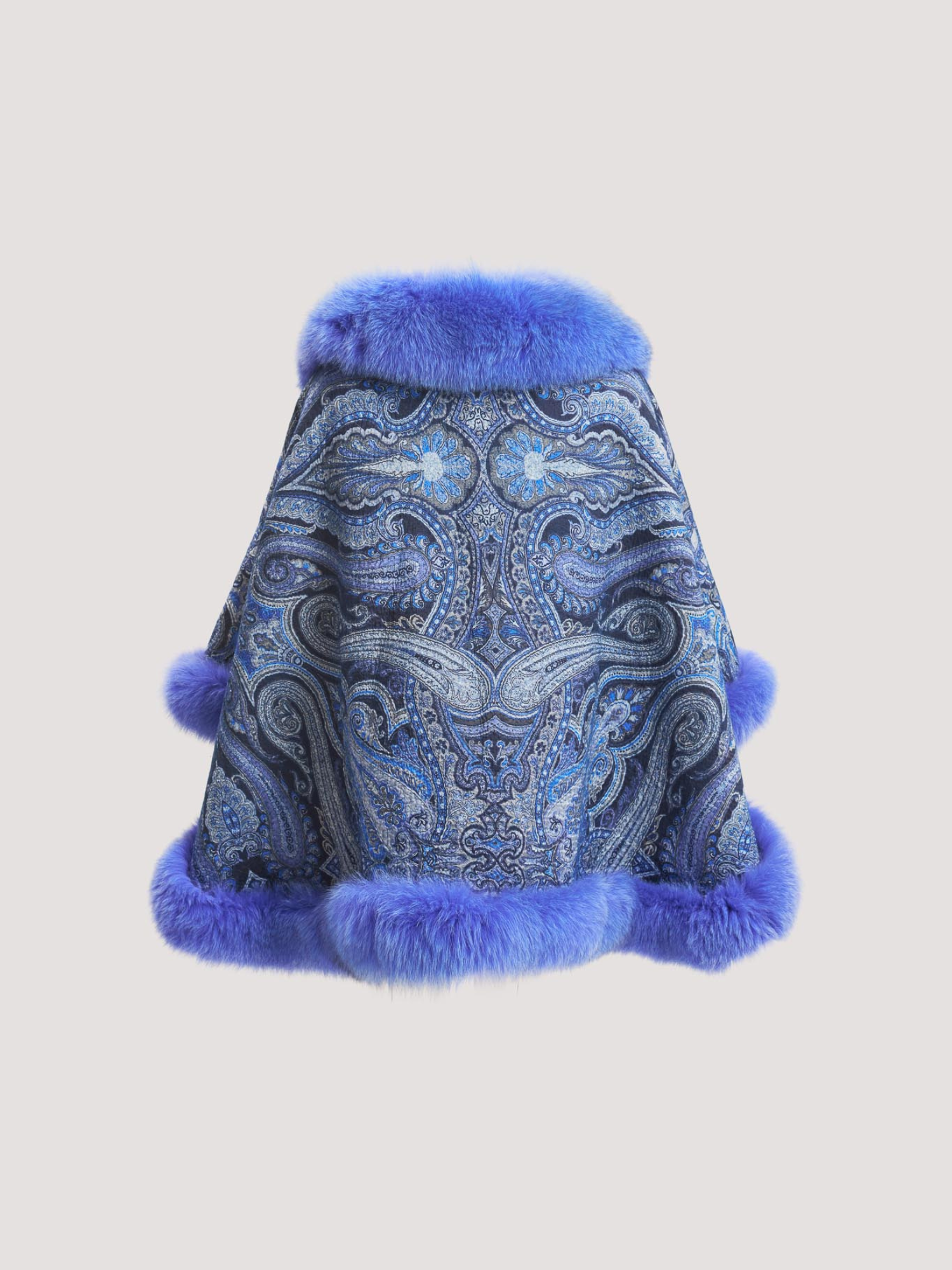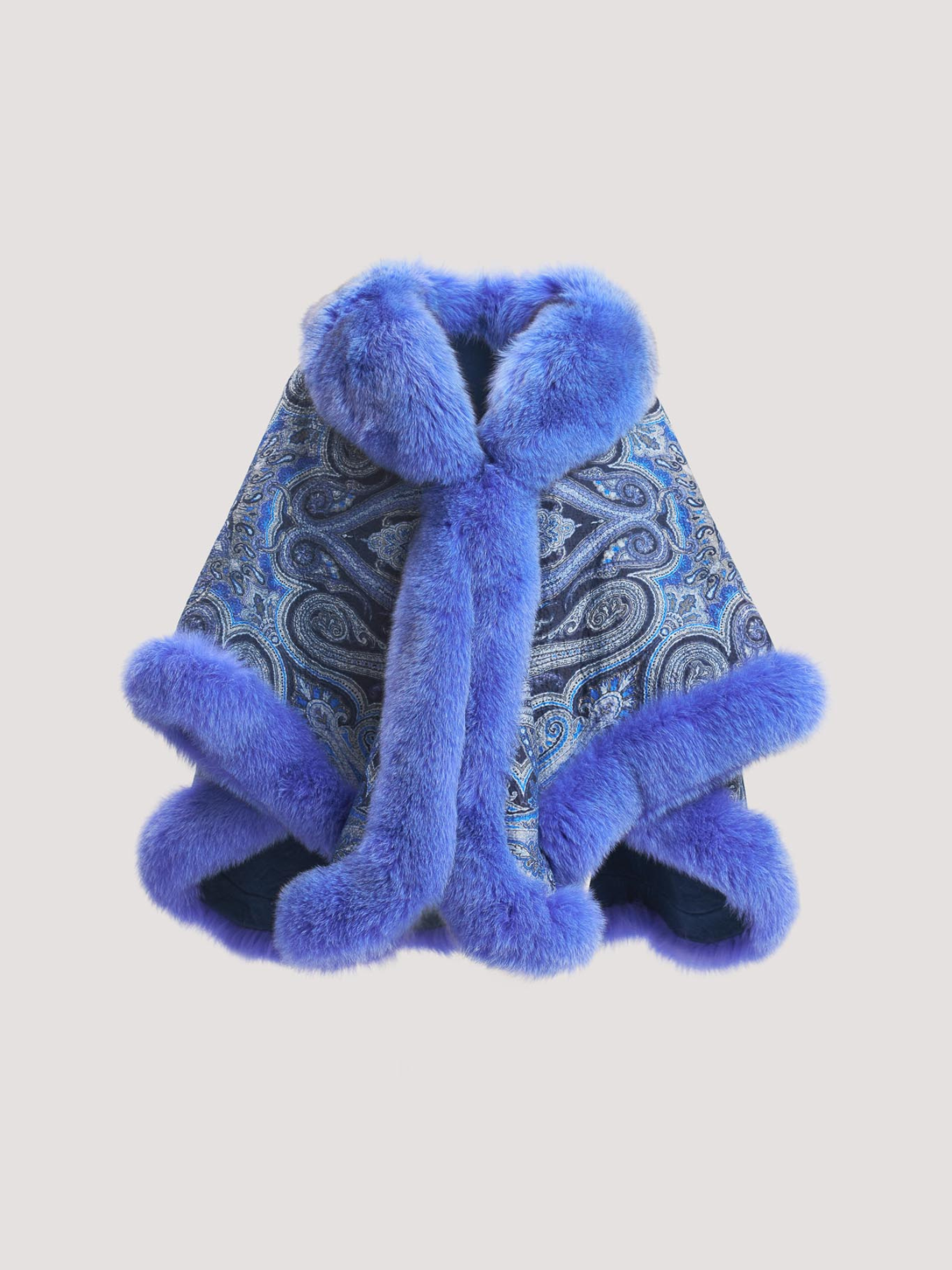 This poncho, crafted with real fox fur, combines elegance and warmth.