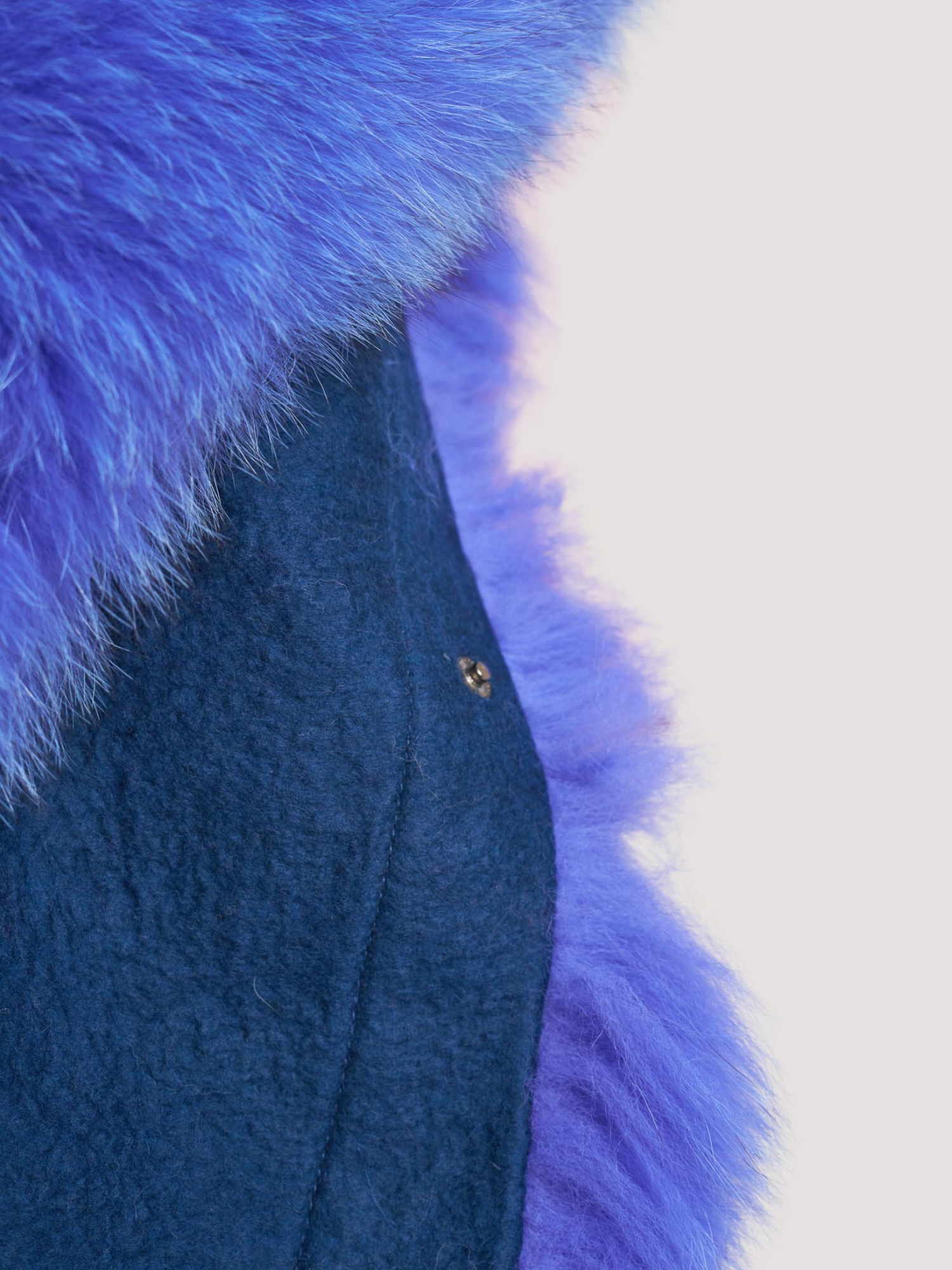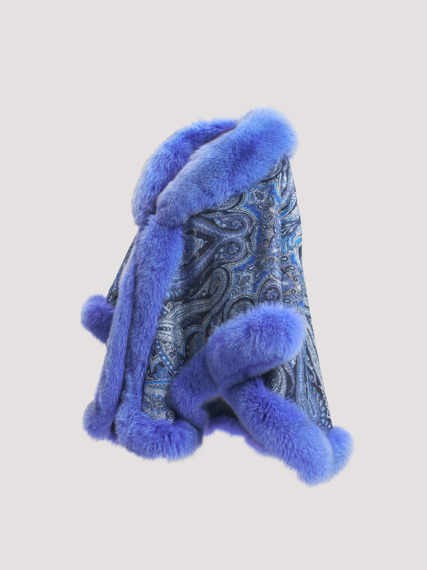 Merino Felt Fox Fur Poncho - Electric Blue Endo