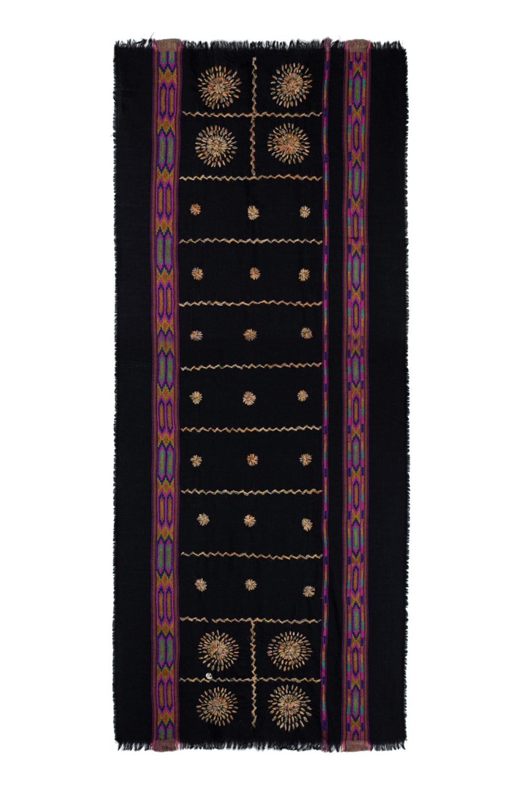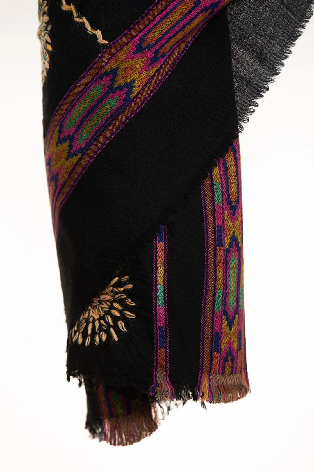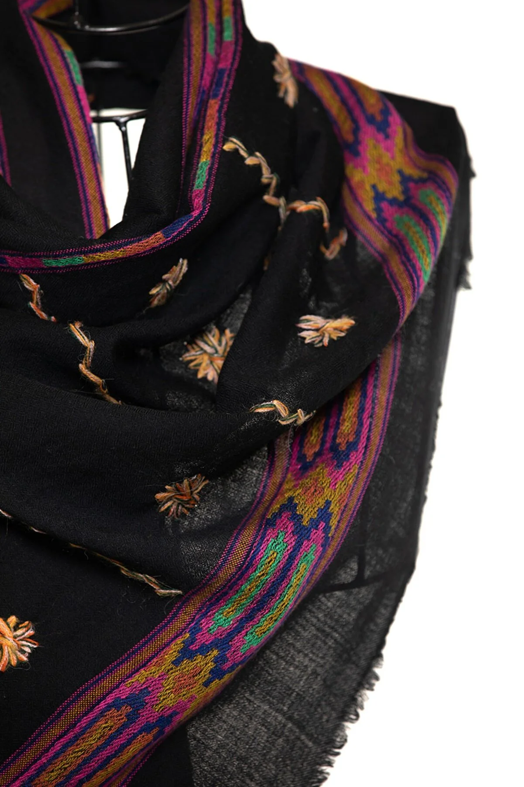Three Dimensional Fluff Boil Wool Shawl - Black Lines